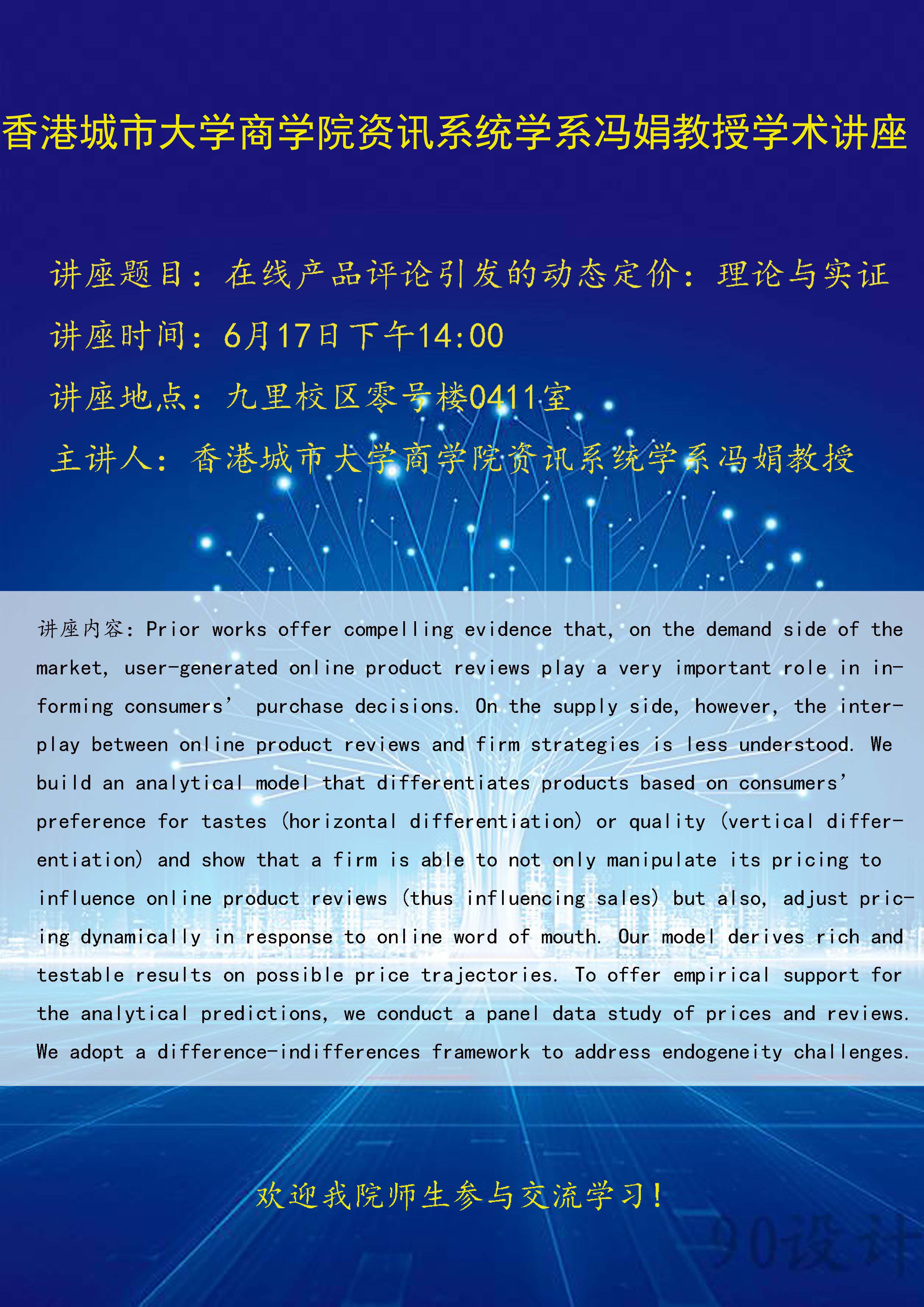 香港城市大学商学院资讯系统学系冯娟教授学术讲座