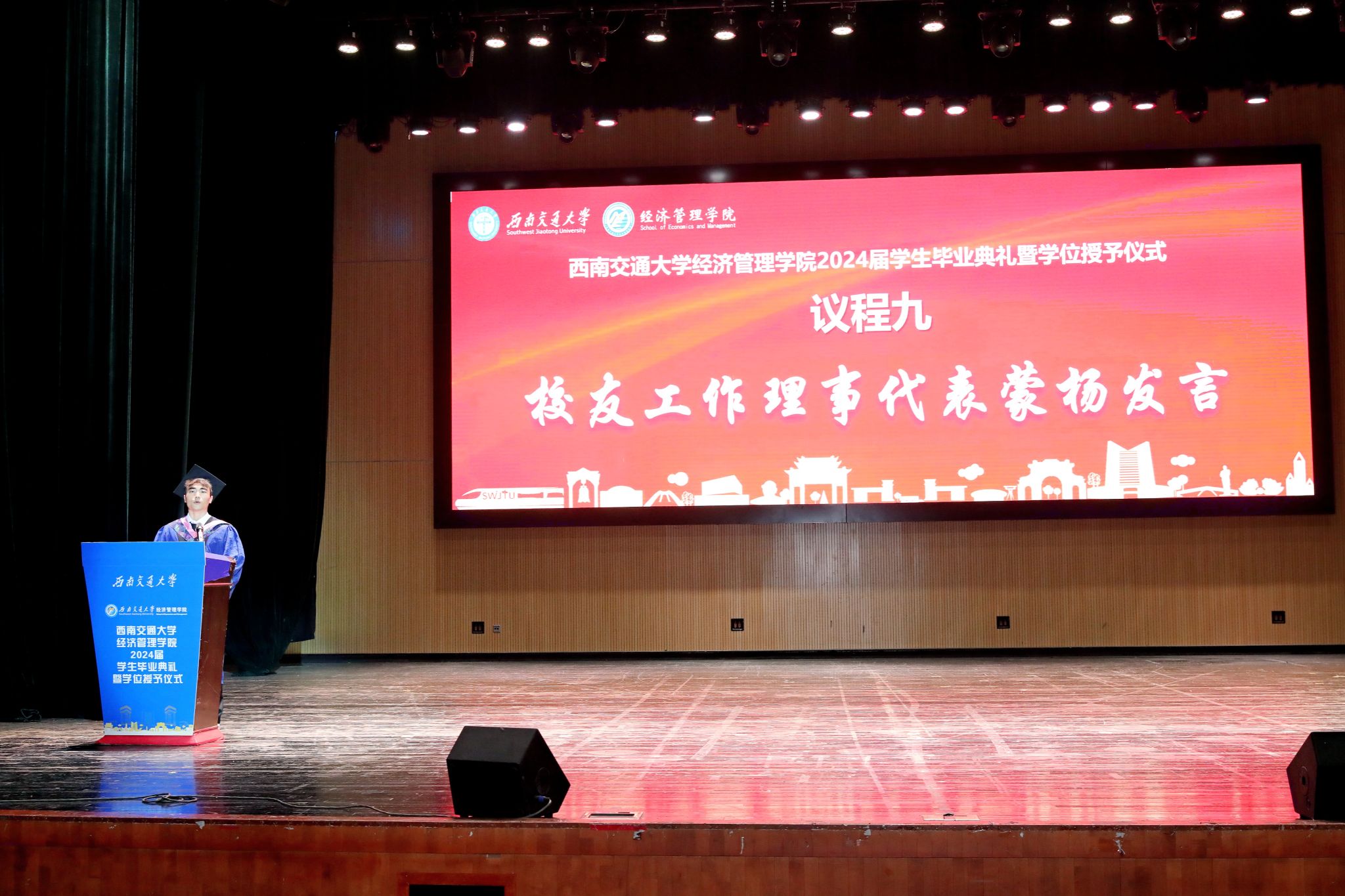 首先,学院院长韩科为典礼致辞。他代表开云kaiyun官网全体师生,向全院2024届毕业生表示热烈祝贺,并对他们在学院学习期间所取得的成绩给予高度认可。临别之际,他强调,希望同学们时刻谨记校训、院训,发扬交大精神,展现交大学子的担当。同时,韩院长为毕业生们提出了三点建议:一是提升境界的高度,二是拓展胸怀的广度,三是加深信念的深度,希望毕业生们带着学院的关心关怀,无惧风雨,奋勇前进,学院永远是经管学子们温馨的家。字字句句间,都寄托着对全体毕业生的深情嘱托与美好祝愿。