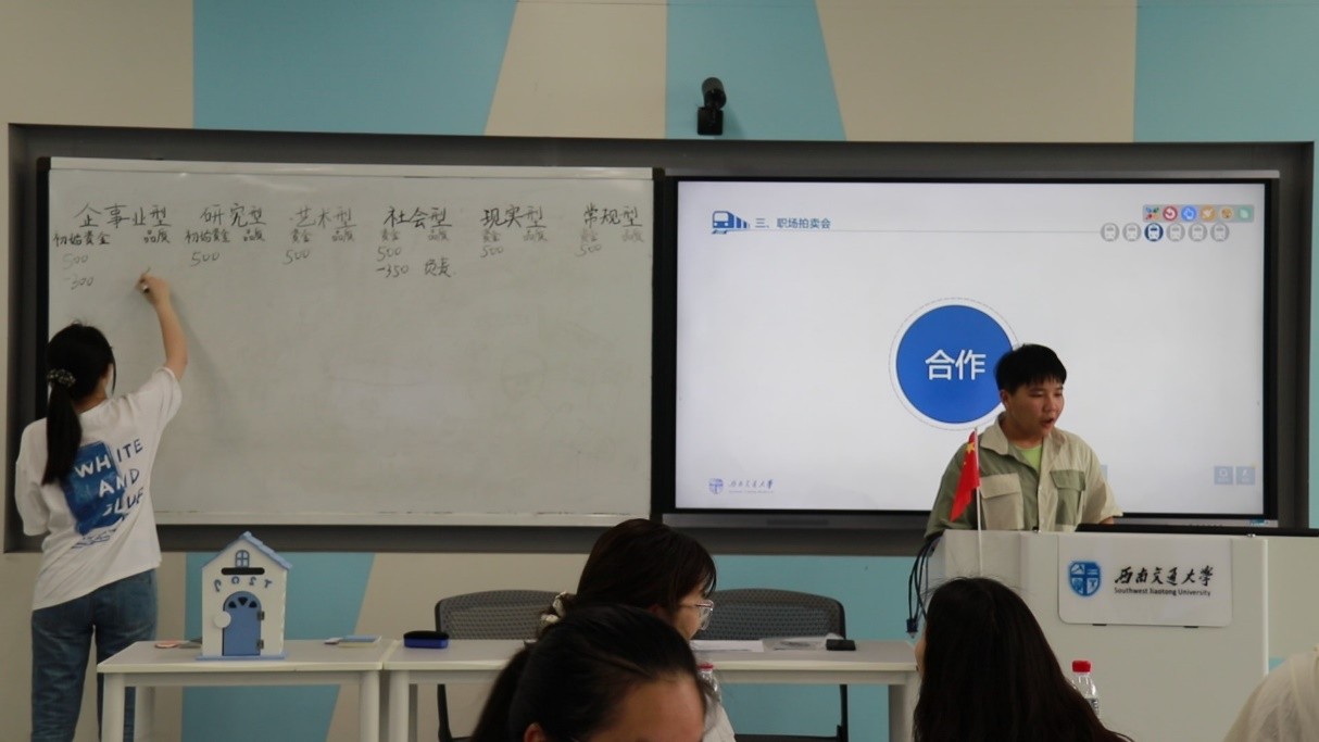 在现场热烈的气氛中,班会进入第四个环节“大富翁历险”。同学们将利用现有的资金和品质进行冒险,并运用自己的聪明才智化解岛屿上遇到的考验。每个岛屿都会有一个情景考验,同学们根据自己的品质做出选择,并讲出选择的理由。这个游戏考验大家对突发情况的应变能力,同时也为大家简单模拟职业生涯中可能遇到的挑战。