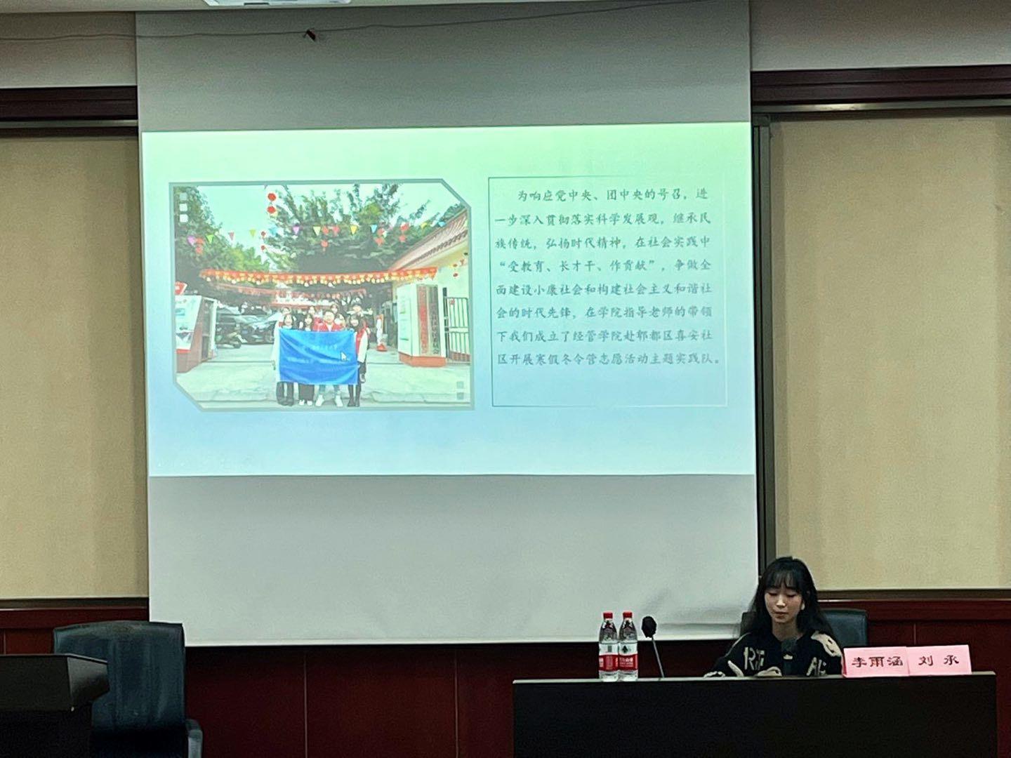 2023年4月6日晚,“星火经英计划第十一期第四次团干部培训于J0224顺利举行,本次培训由全国百强大学生暑期实践团队成员、多次获得社会实践奖项的刘承与李雨涵主讲,主题为“社会实践团队经验分享”,旨在帮助同学们深入理解社会实践活动内涵,更好开展社会实践工作。