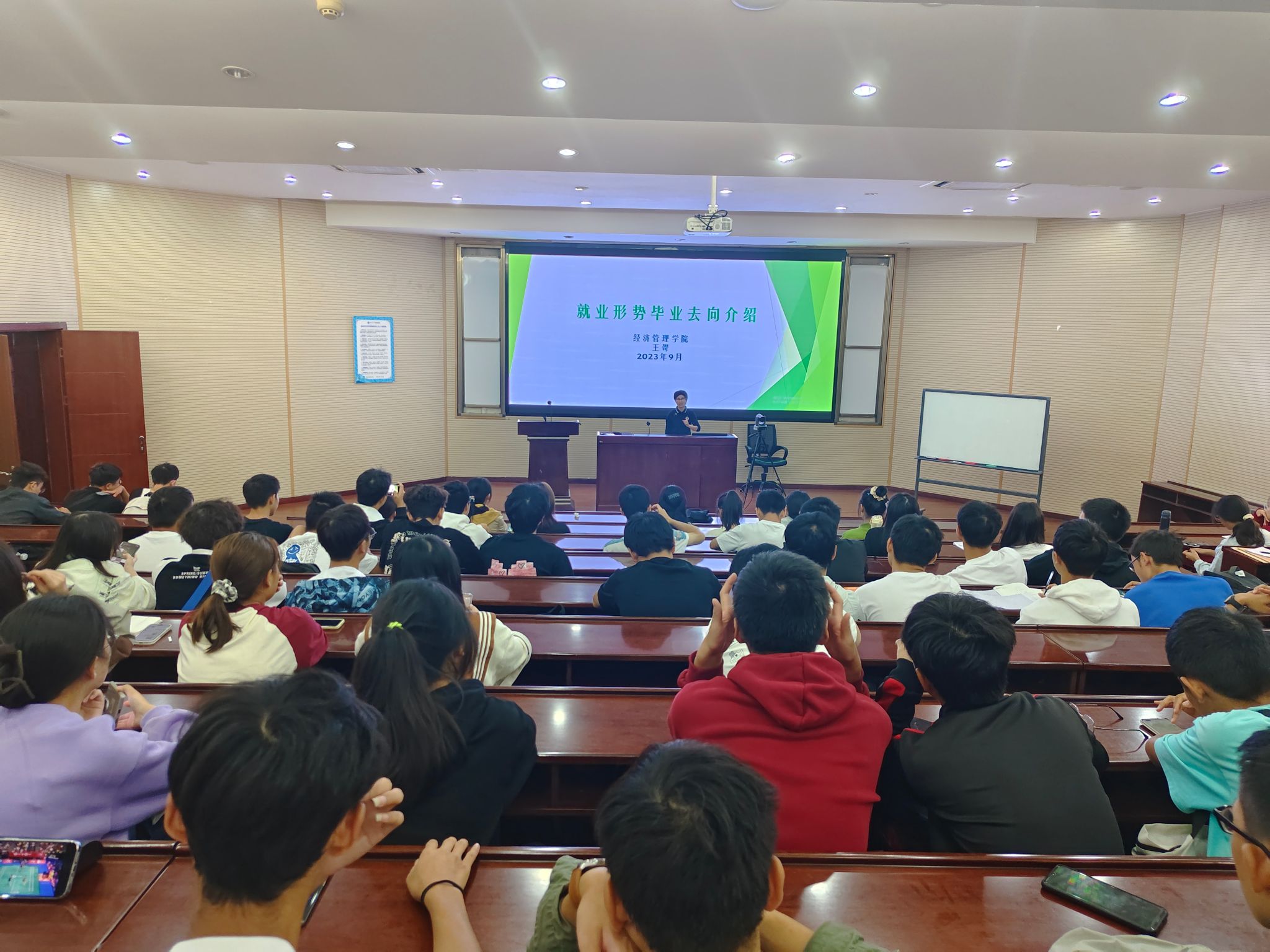 2023年9月27日上午,开云kaiyun官网本科2023级经济贸易类专业在零号楼0202室召开了生涯教育之就业形势与毕业去向介绍会。学生工作组副组长王哿老师主讲,2023级经济贸易类全体同学参加。此次介绍会旨在帮助同学们了解就业形势,尽快适应大学生,及早明确个人方向,做好个人大学规划,努力提升个人能力与素质。