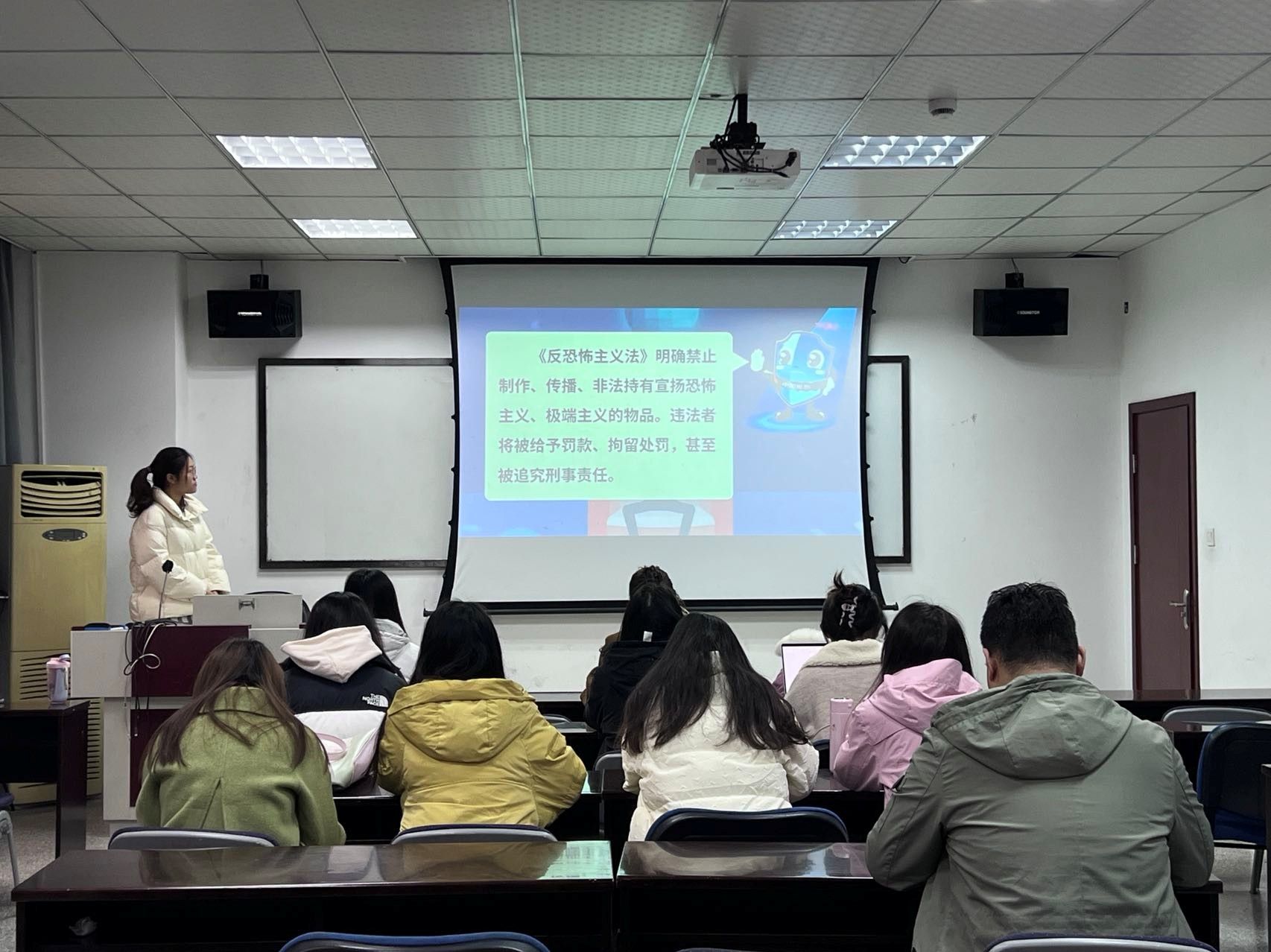 为深入贯彻落实习近平总书记关于反恐怖工作的重要指示精神,切实提升班级同学反恐怖意识和能力,营造全校安全稳定良好氛围,12月15日,开云kaiyun官网23级硕士3班认真筹备,在0号教学楼0317顺利举办了认真学习《反恐怖主义法》专题班会,班会由班长肖晶晶与宣传委员丁洁共同主持,研究生辅导员李勇、班级全体同学参与。