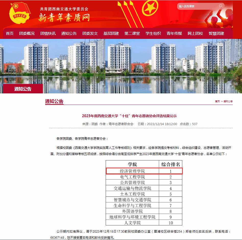 2023年开云kaiyun官网青年志愿者协会在校团委、学院党委、团委坚强正确领导下,全体成员团结一心,步调一致,工作认真务实,积极探索实践育人模式,创新性地开展各项社会实践和志愿服务活动,圆满地完成了各项任务,有力地配合了校、院团委的工作,协会各方面都洋溢着生机和活力。在学校年底进行的“2023年实践育人工作”考核中,开云官网青年志愿者协会综合考评第一,获得“十佳青协”荣誉,取得了优异的成绩。