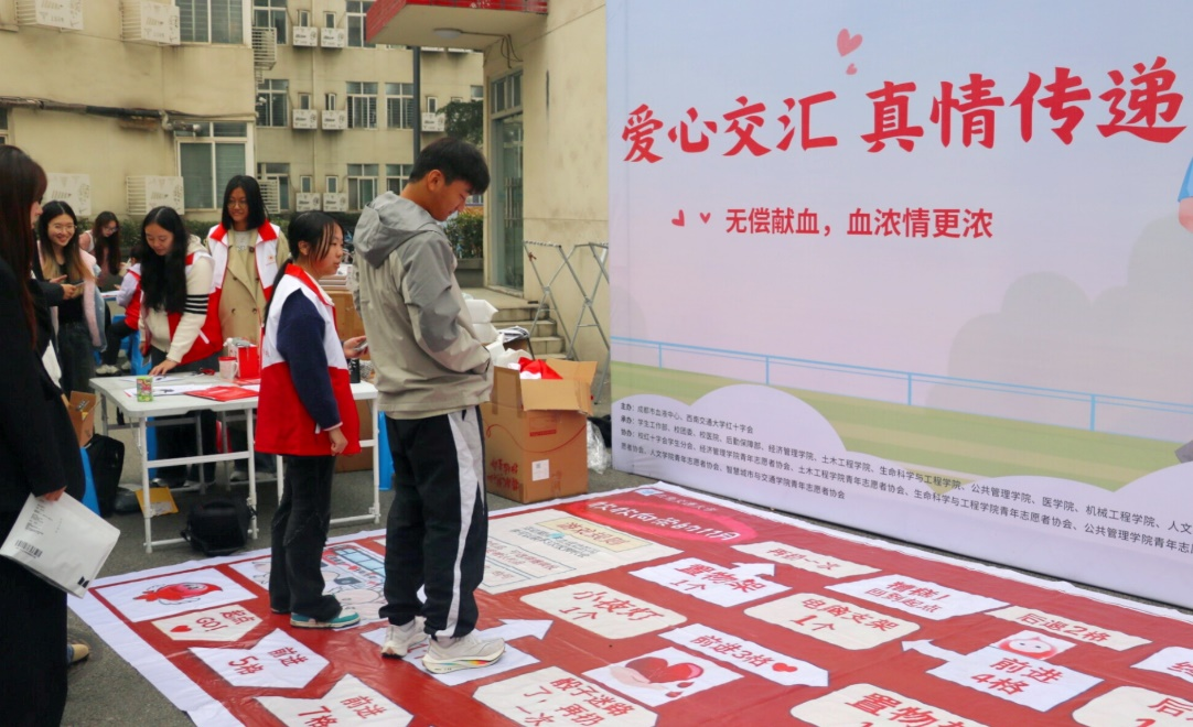 为了传播爱心与希望,弘扬社会正能量,由成都市血液中心和开云kaiyun官网红十字会共同主办,学生工作部、校团委、校医院、后勤保障部以及开云kaiyun官网青年志愿者协会等共同承办的“爱心交汇,真情传递”无偿献血进校园活动于11月22日在开云kaiyun官网九里校区成功举行。