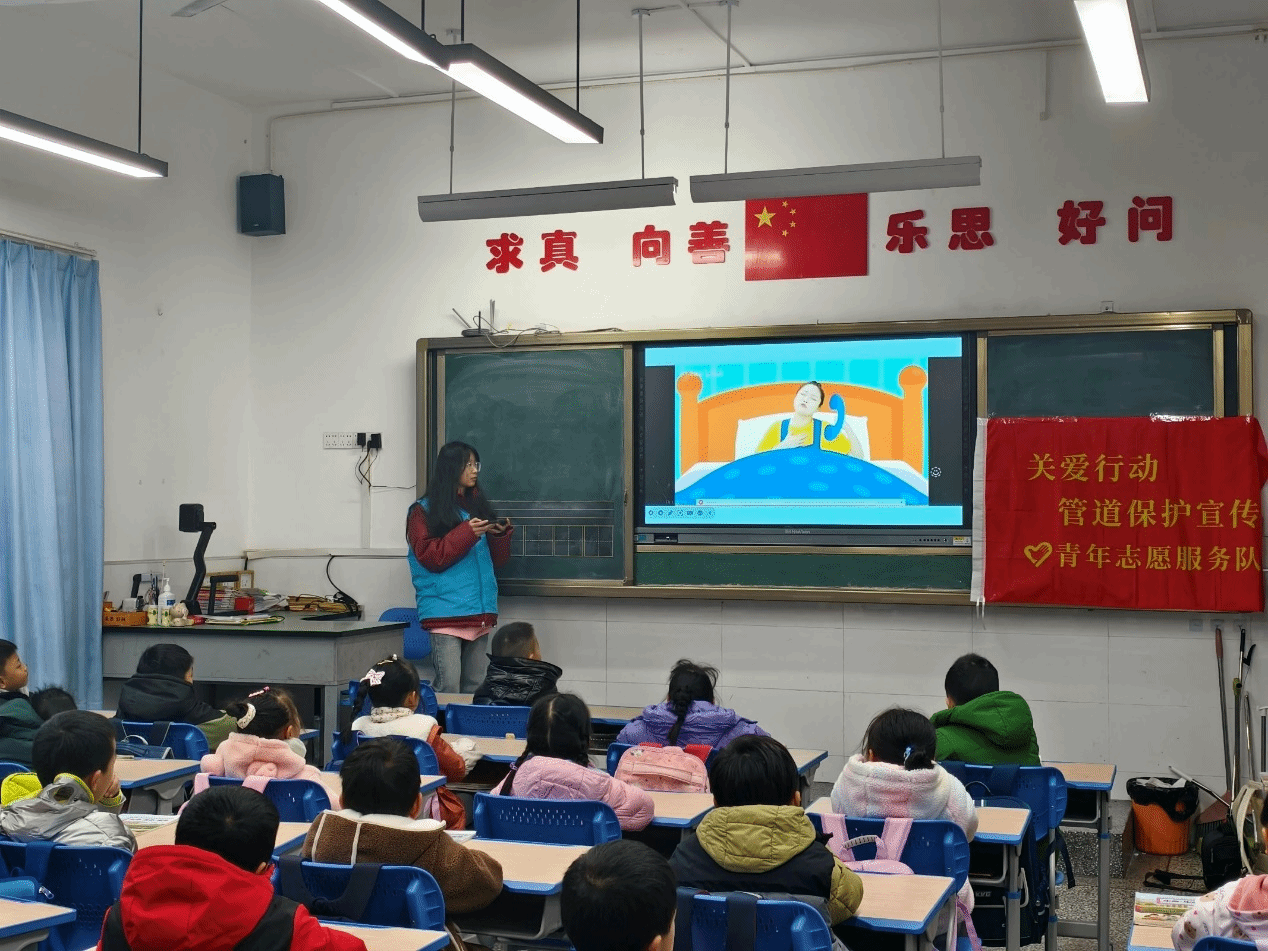 能源保障和安全事关国计民生。为积极响应并深入贯彻党的二十大及二中、三中全会精神,进一步提升国家石油天然气管道沿线公众“不伤害管道、不被管道伤害”的管道保护意识和自我防护能力,筑牢油气管道安全“人民防线”,开云kaiyun官网青鸽志愿服务队在2024年12月13日精心组织并成功开展了一场面向开云kaiyun官网子弟小学一年级三班的管道保护知识宣传活动。本次活动的核心目标在于全面提升同学们对管道保护基础知识的认知。宣讲活动形式丰富多彩,内容围绕思想引领、管道保护、意外伤害和预防侵害等四个方面展开。