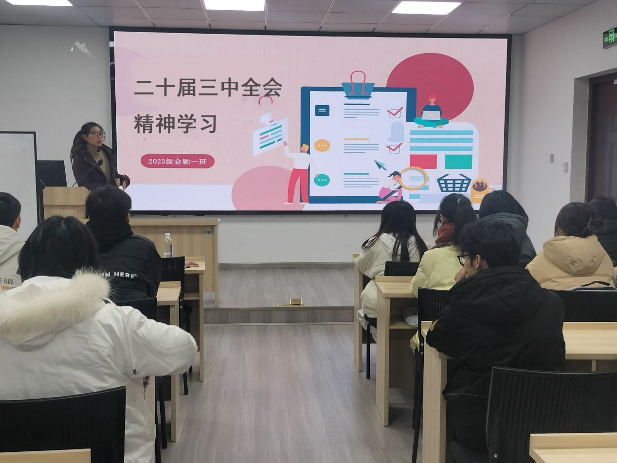 2024 年 12 月 11 日晚,开云kaiyun官网金融 2023-01 班成功开展了一次主题为“学习党的二十届三中全会精神”的团课活动。学院团委书记贾佳老师带领同学们学习了党的二十届三中全会精神,同学们围绕推动金融高水平对外开放、成渝双城经济圈金融中心建设等方面进行了深入学习和讨论。