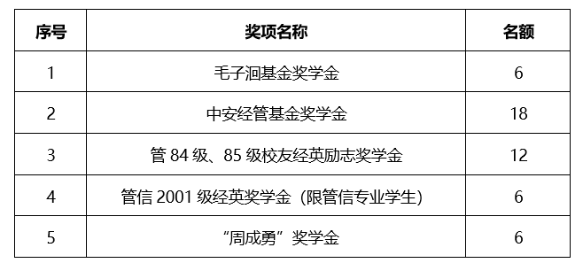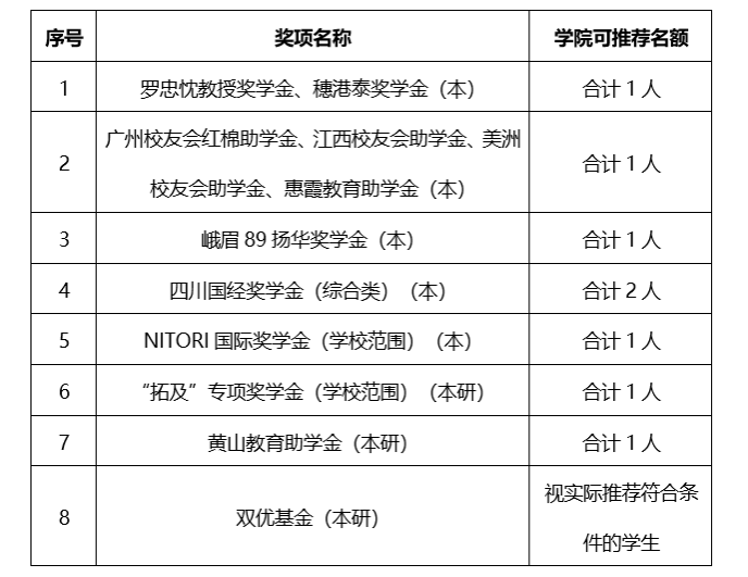 2. 学院范围专项奖助学金可推荐名额(相关管理办法见附件5:2022-2023学年开云kaiyun官网本科生专项奖助学金评定办法汇总)