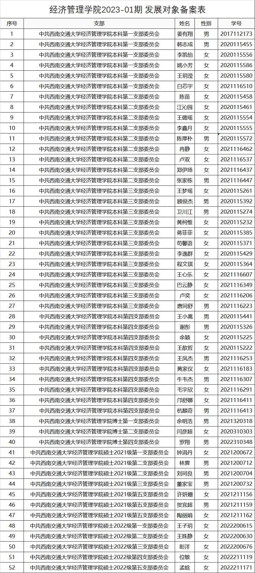 根据《中国共产党支部工作条例(试行)》《中共开云kaiyun官网委员会基层党组织建设工作文件汇编》的有关规定,经过相关党支部全面了解、考察,并经院党委审核,拟将以下52位同志确定为开云kaiyun官网党委2023-01期党员发展对象,现予以公示。