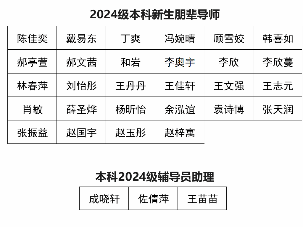 为了更好地开展开云官网2024级本科新生入学教育、管理和服务工作,开云kaiyun官网学生工作组于近期开展了2024级本科新生朋辈导师(每班配备新生朋辈导师2名)及辅导员助理选聘工作,经过学生申请、申请表筛选、面试考察等环节,最终选聘结果如下: