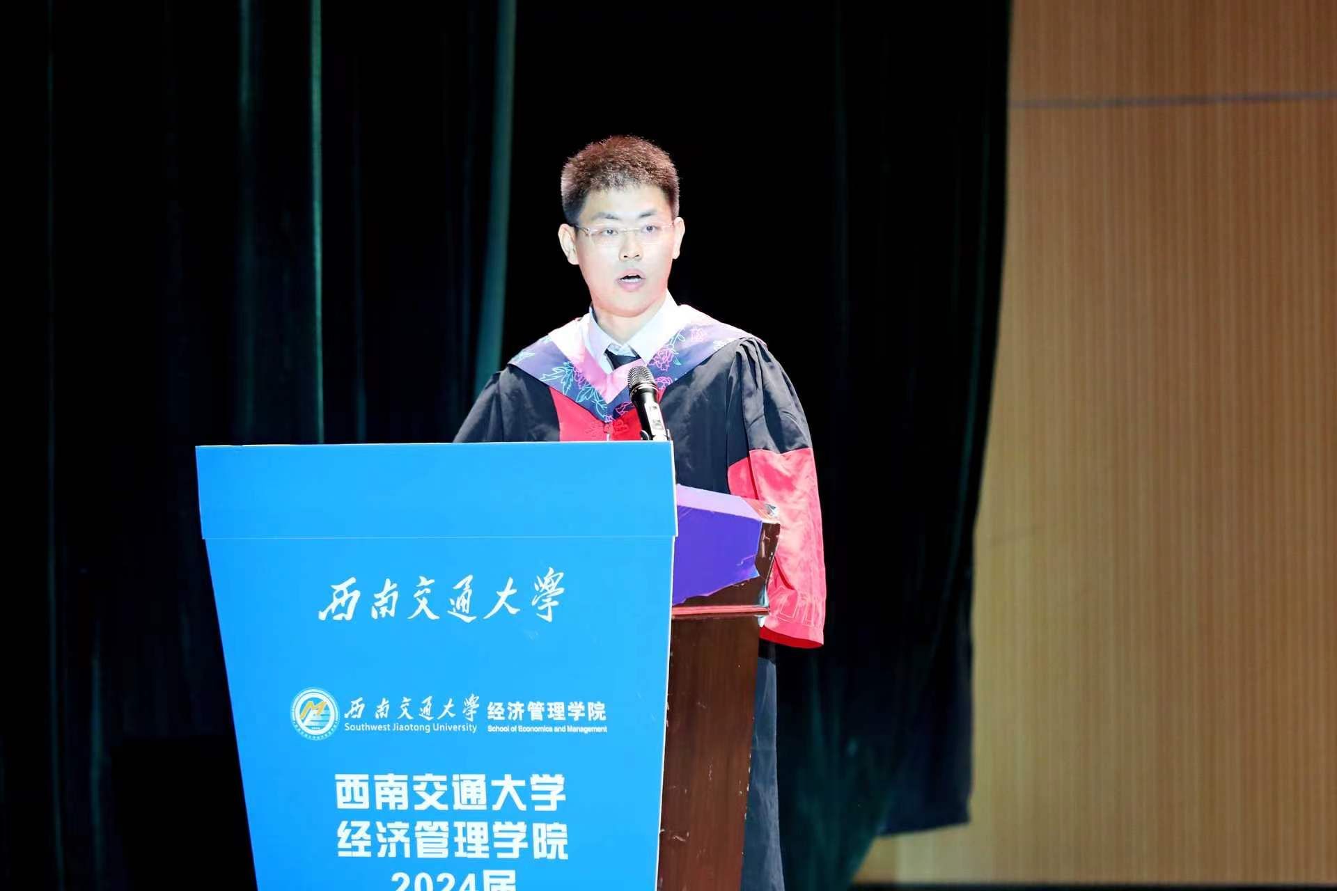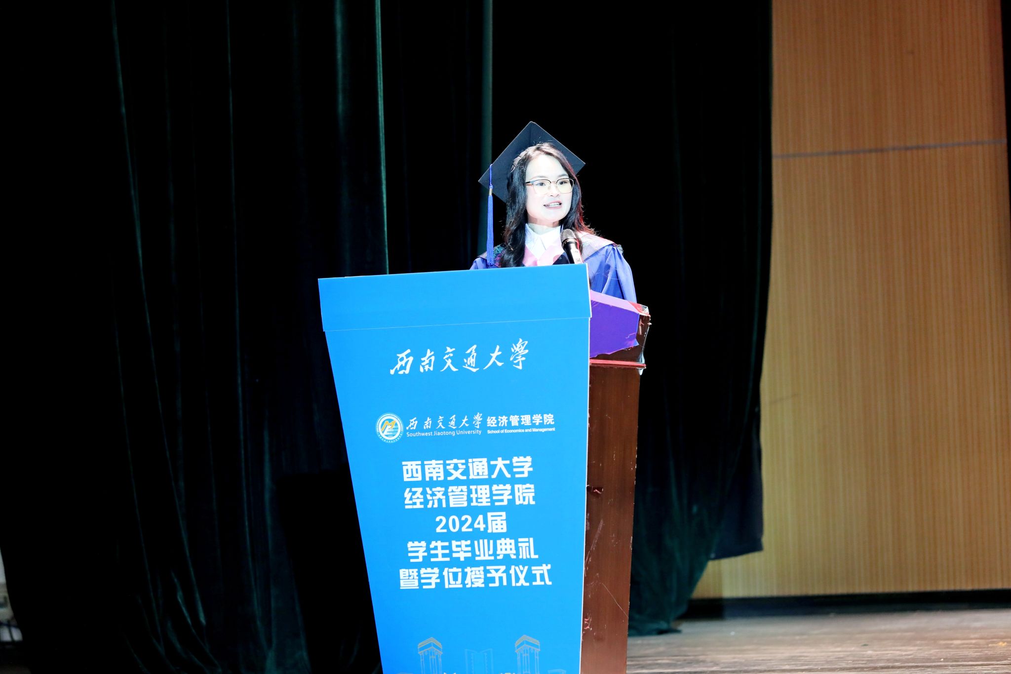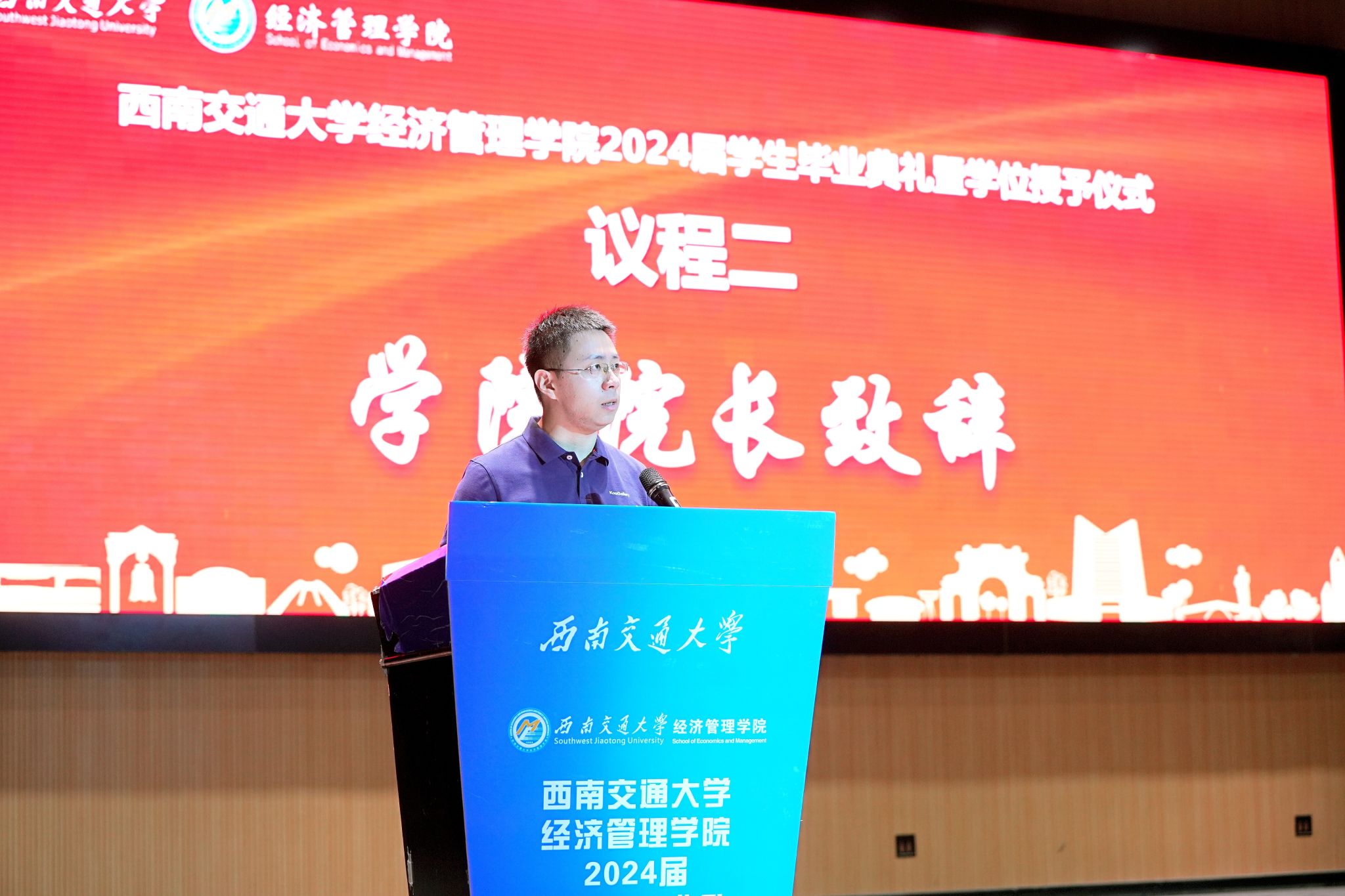 首先,学院院长韩科为典礼致辞。他代表开云kaiyun官网全体师生,向全院2024届毕业生表示热烈祝贺,并对他们在学院学习期间所取得的成绩给予高度认可。临别之际,他强调,希望同学们时刻谨记校训、院训,发扬交大精神,展现交大学子的担当。同时,韩院长为毕业生们提出了三点建议:一是提升境界的高度,二是拓展胸怀的广度,三是加深信念的深度,希望毕业生们带着学院的关心关怀,无惧风雨,奋勇前进,学院永远是经管学子们温馨的家。字字句句间,都寄托着对全体毕业生的深情嘱托与美好祝愿。