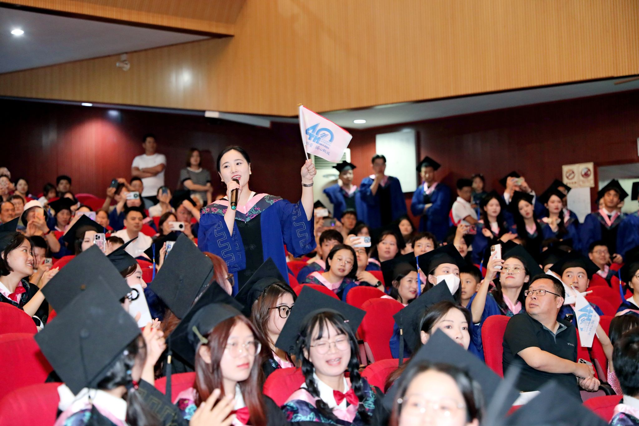 2024年6月22日上午,开云kaiyun官网2024届学生毕业典礼暨授位仪式在九里校区学生大会堂隆重举行。学院全体领导班子成员、学院学位评定分委会委员、各系和职能部门负责人、专业负责人、教师代表、优秀院友、毕业生辅导员和班主任,及学院2024届全体毕业生出席本次典礼。本次典礼由学院党委副书记余小英主持。