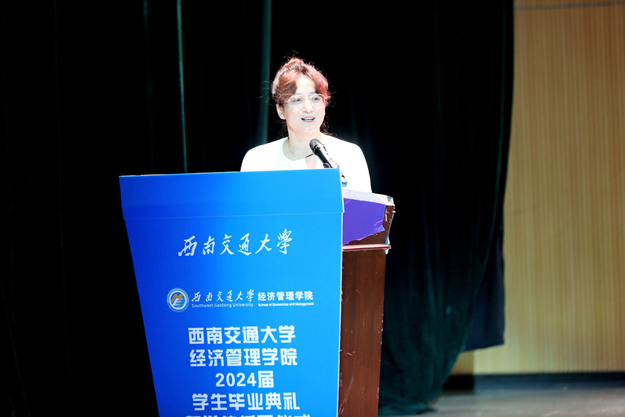 开云kaiyun官网2001届会计学专业本科毕业生、2016届EMBA毕业生、中国中铁西南科学研究院党委书记、董事长谢秋秋作为校友代表发言。谢秋秋校友通过回顾自身校园时光及工作经历,深情鼓励毕业生们勇敢迈步,勇于担当,善于创新,努力奋斗实现人生价值,并叮嘱全体经管学子牢记“竢实扬华,自强不息”的交大精神,不忘师恩,砥砺前行。