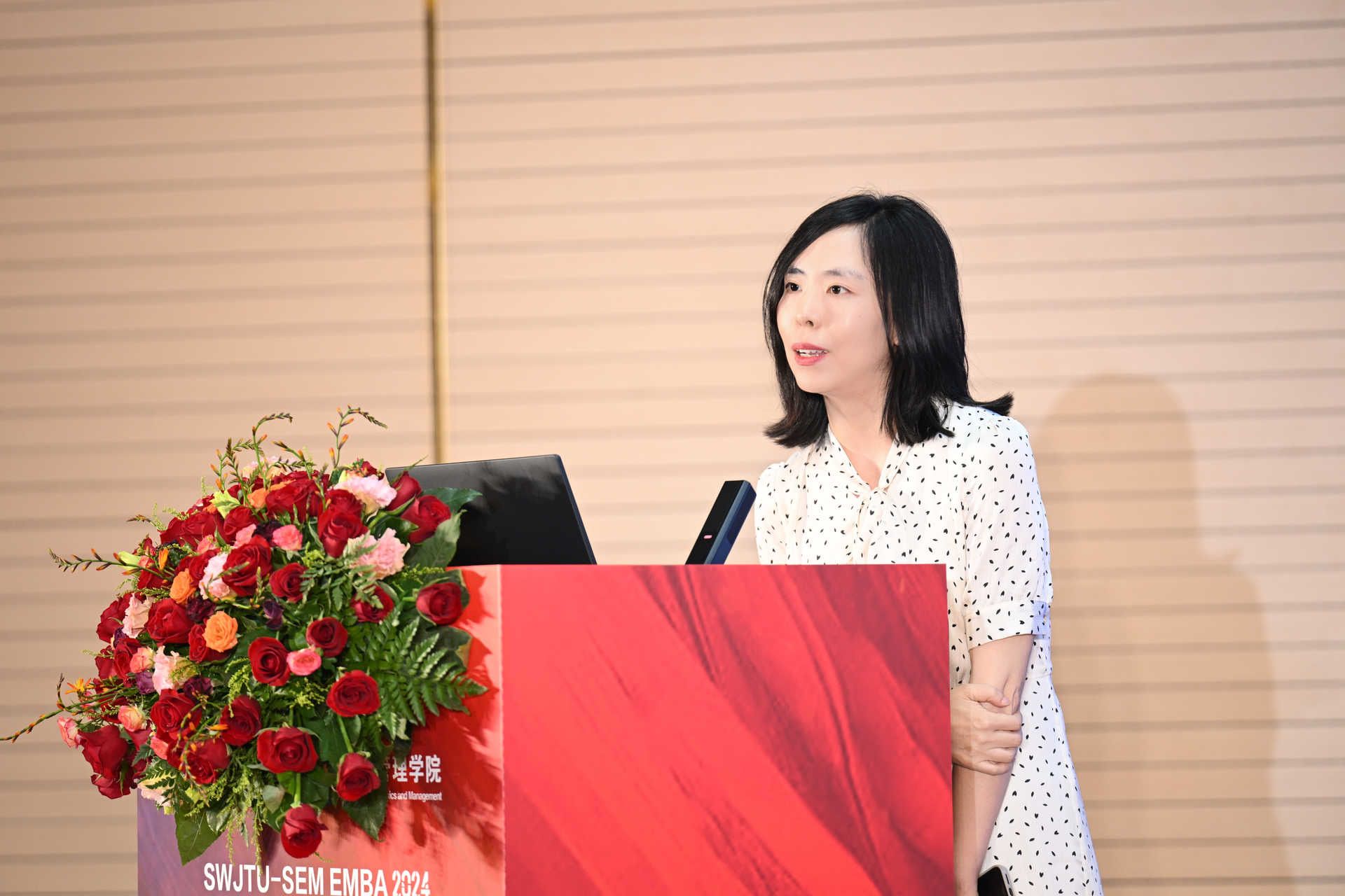 紧接着,杜敏通先生作为EMBA新生代表发言。他代表全体新生向学校和老师表示敬意和感谢,向同学表示祝福和期待。他希望同学们积极学习,不懈努力,争做杰出的企业家和管理者。通过在西南交大的学习,为社会的进步和国家的发展贡献自己的力量。