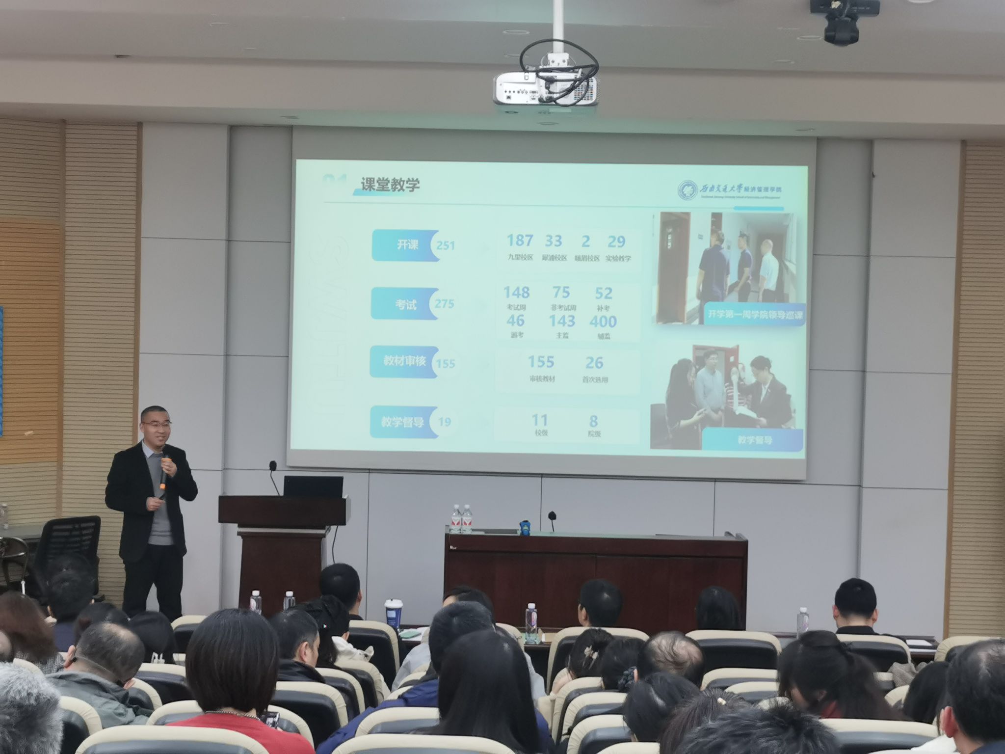 首先,学院科职干部对本年度的工作进行汇报,学院综合事务办公室主任、教师服务办公室主任、学生支持办公室主任、学工组副组长、专职组织员共6名科职干部对本年度的工作进行了总结和反思,并对新一年的工作计划和目标作出了展望。