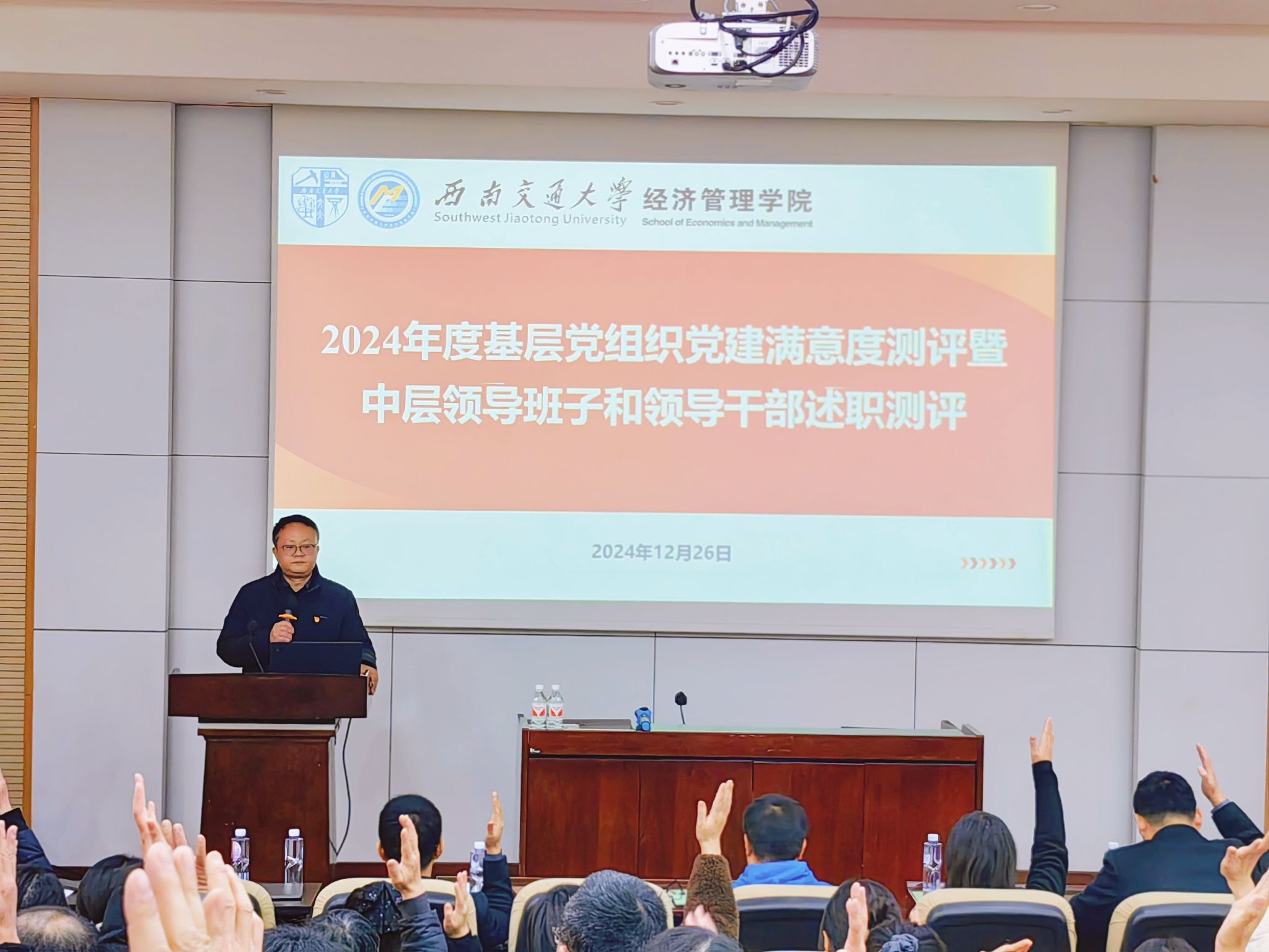 2024年12月26日下午在0215报告厅,按照学校工作部署,开云kaiyun官网召开2024年度党建满意度测评和中层领导干部考评暨2024年双代会。学院党政领导班子全体成员、学院教职工和学生党员代表参加测评,会议由学院党委书记郭强主持。