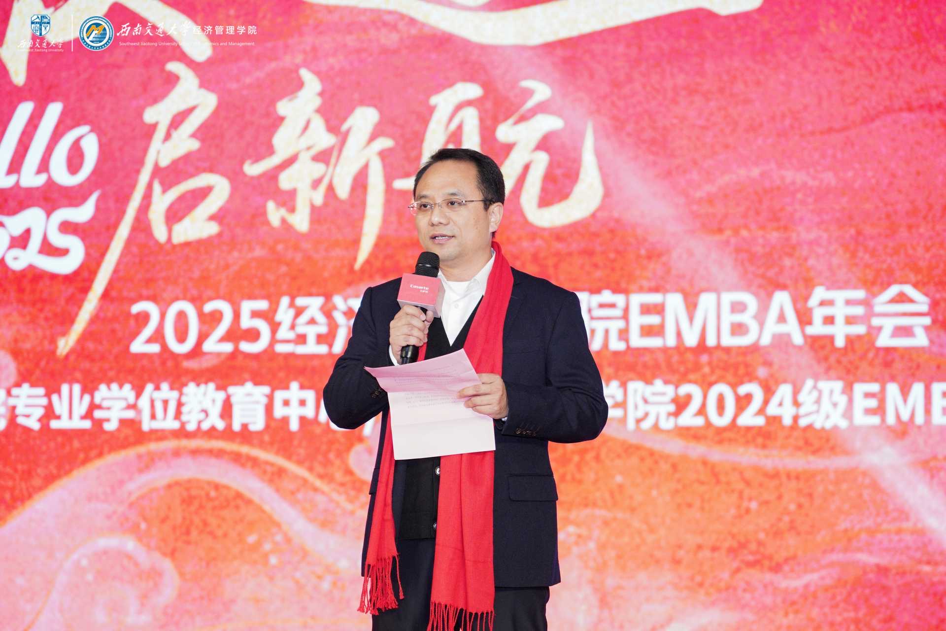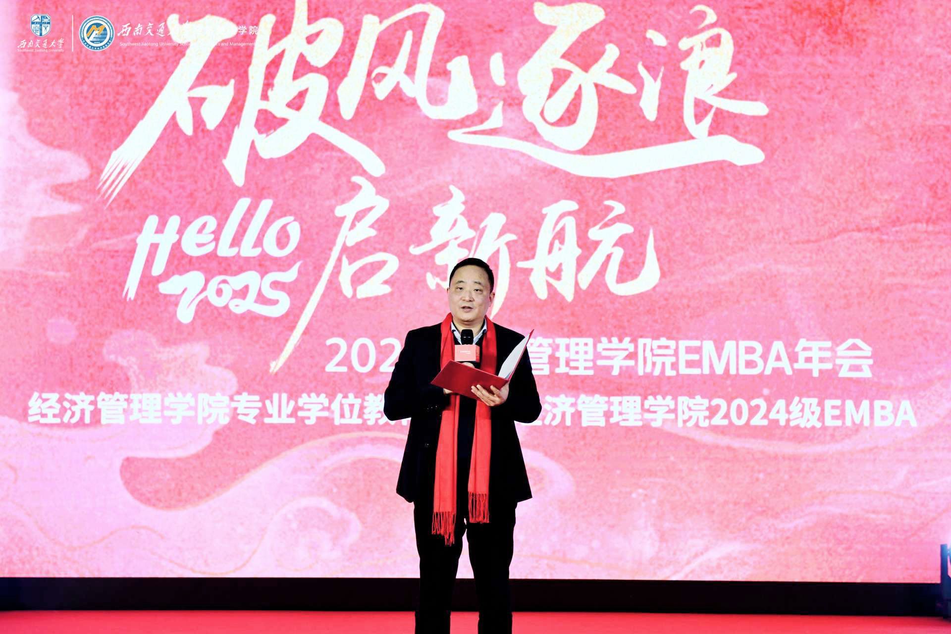 2025年1月4号,开云kaiyun官网开云kaiyun官网2025“破风·逐浪·启新航”EMBA年会在成都隆重举行,学校党委副书记高平平、学校职能部处相关领导以及学院党政领导班子、师生及校友代表齐聚一堂,共襄盛会。