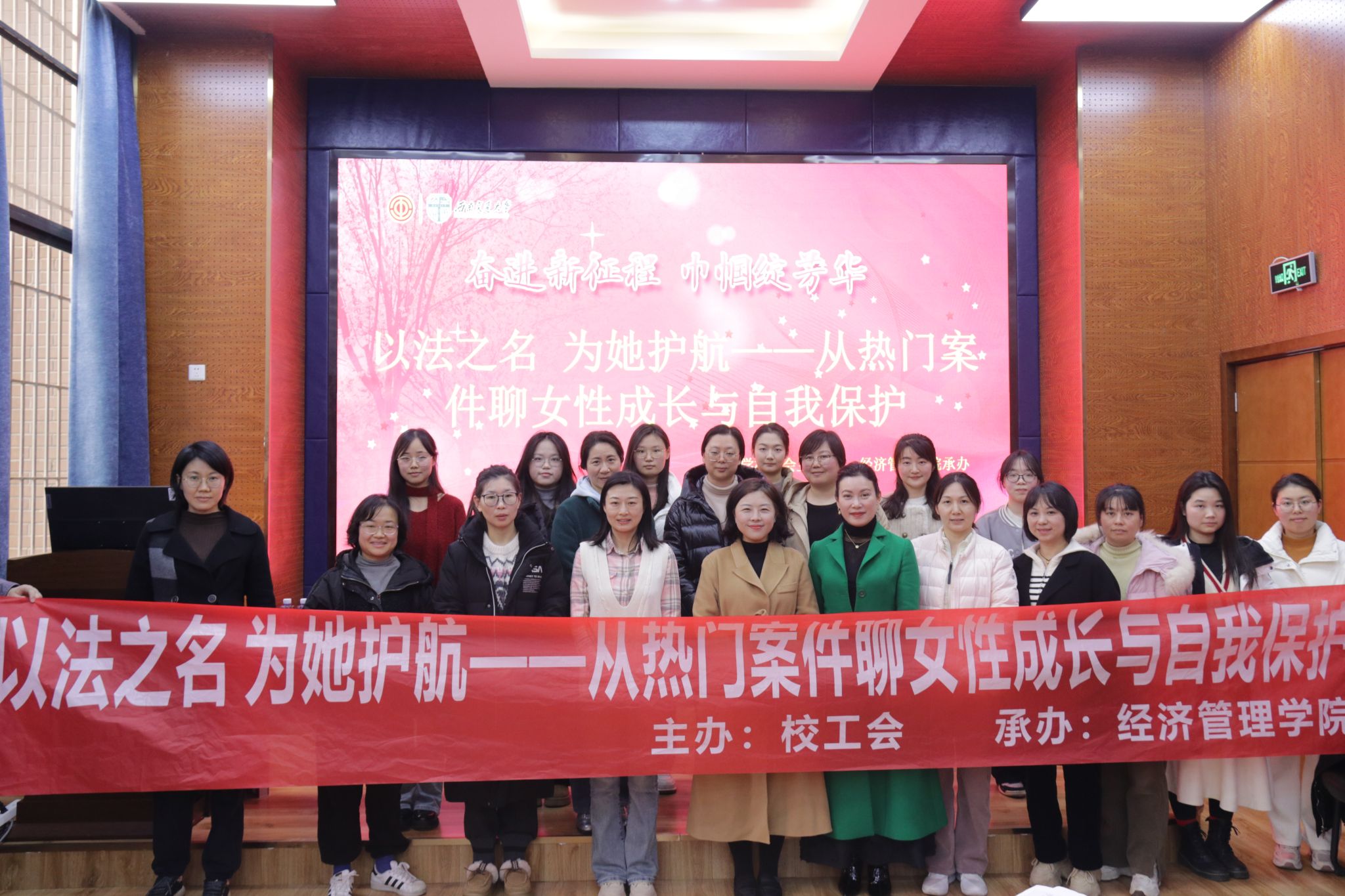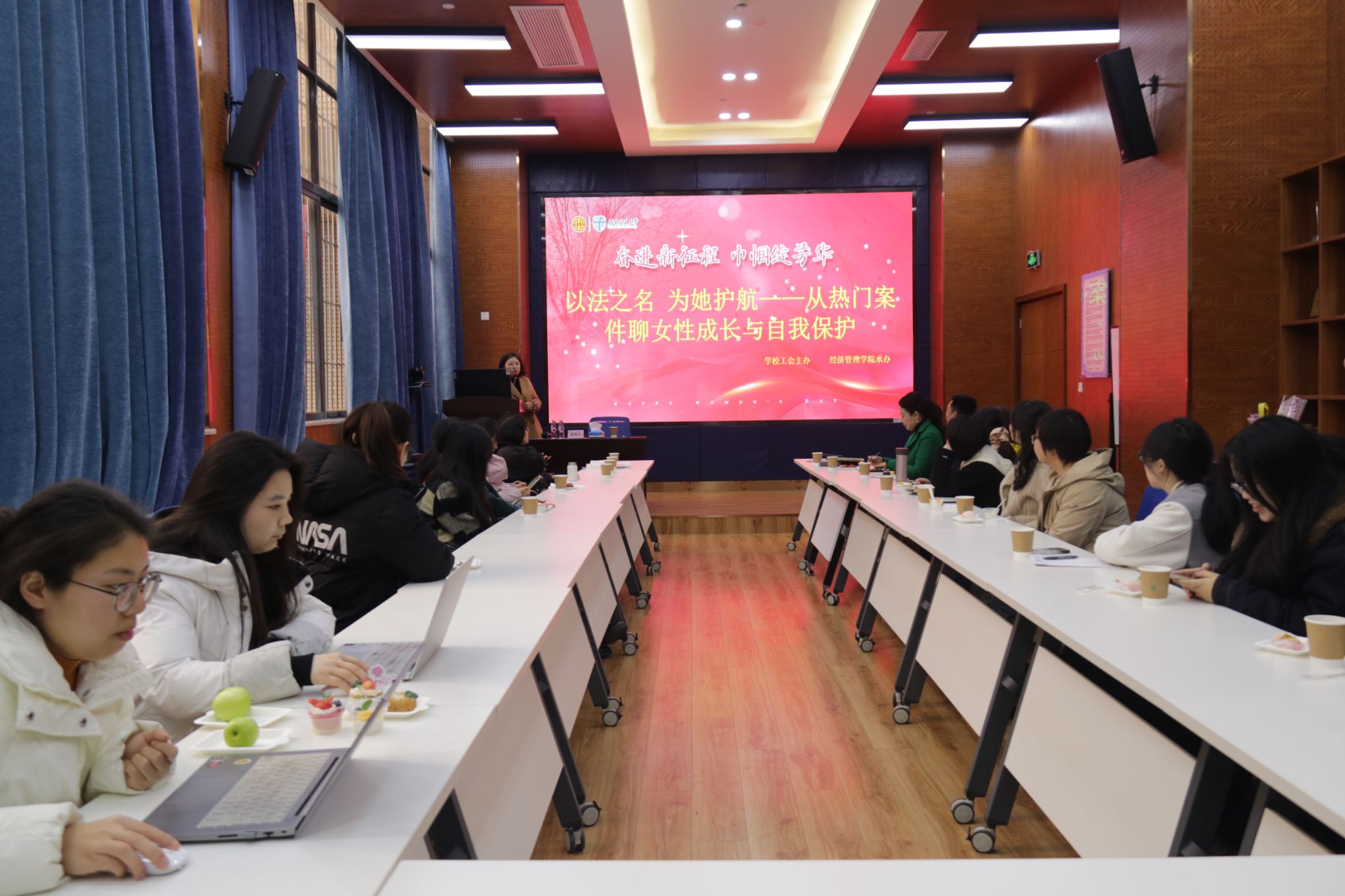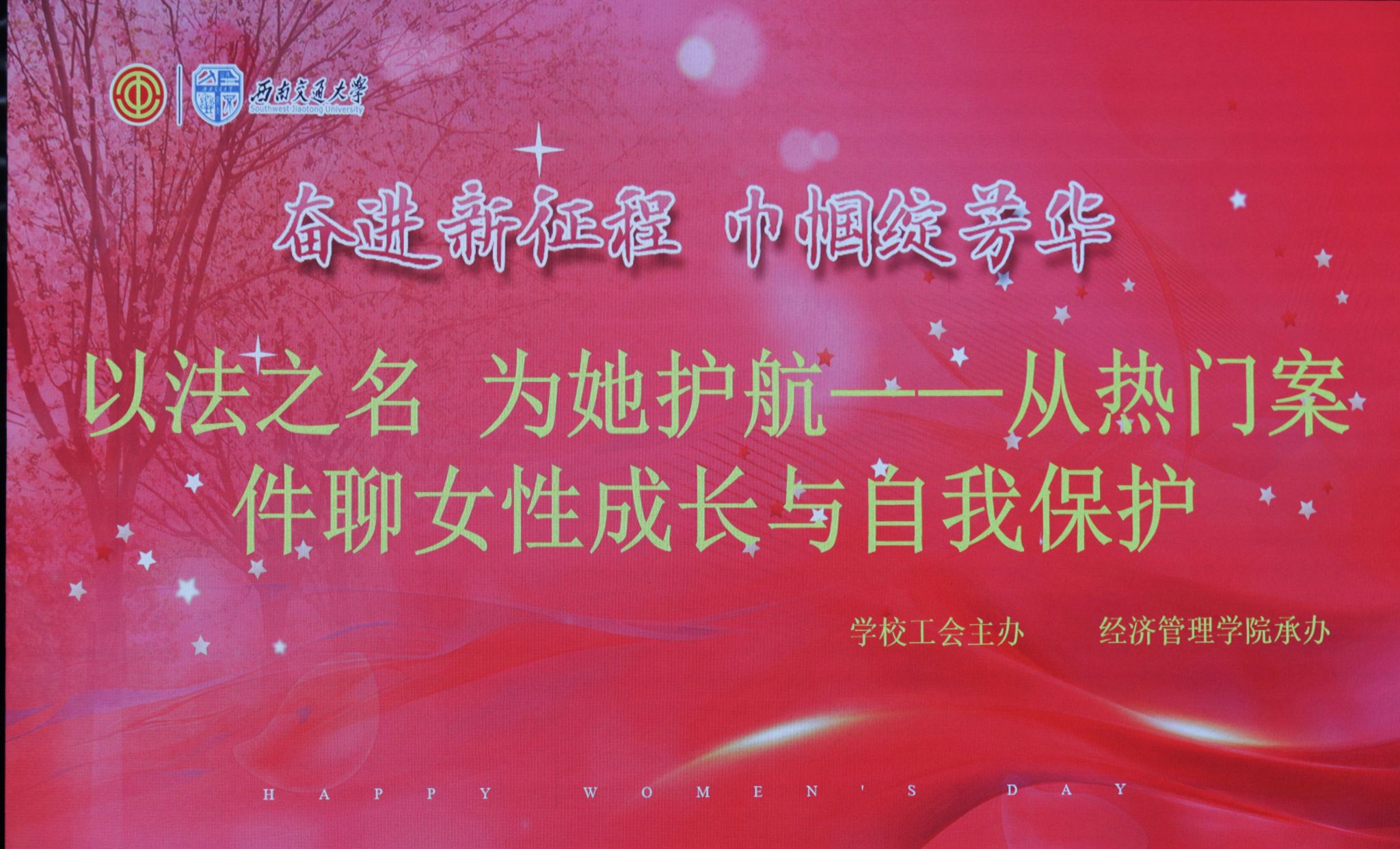 阳春三月,正值第115个国际妇女节来临之日,为提高高校女性教工的法律素养,增强法治观念,促进女性教工群体的法律自我保护意识和能力,2025年3月7日下午2点30分在九里校区0218教室开展了一场“以法之名 为她护航-从热门案件聊女性成长与自我保护”专题分享活动,活动邀请了四川省十佳公诉人、优秀律师蔡蕤洁作主题分享。活动由开云kaiyun官网工会主办,开云kaiyun官网工会承办。