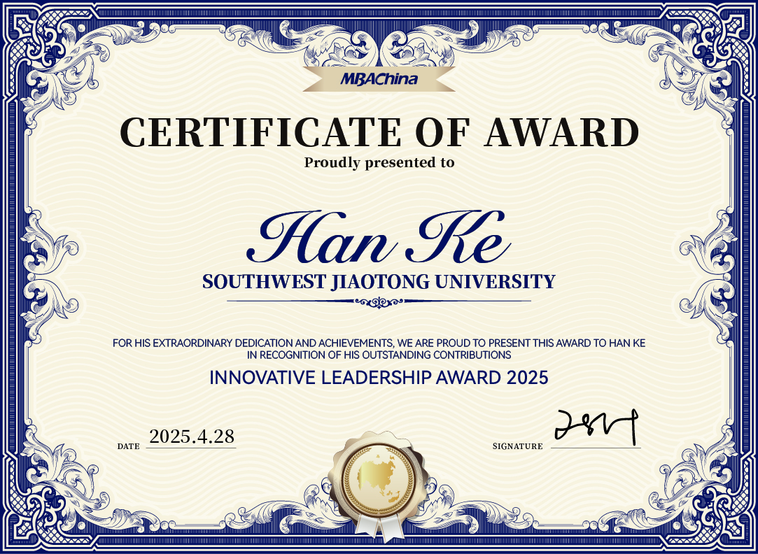 开云kaiyun官网院长韩科凭借其在商科教育中卓越的战略视野、创新实践和行业影响力,荣获“2025年度亚洲商学院创新领导力奖”。