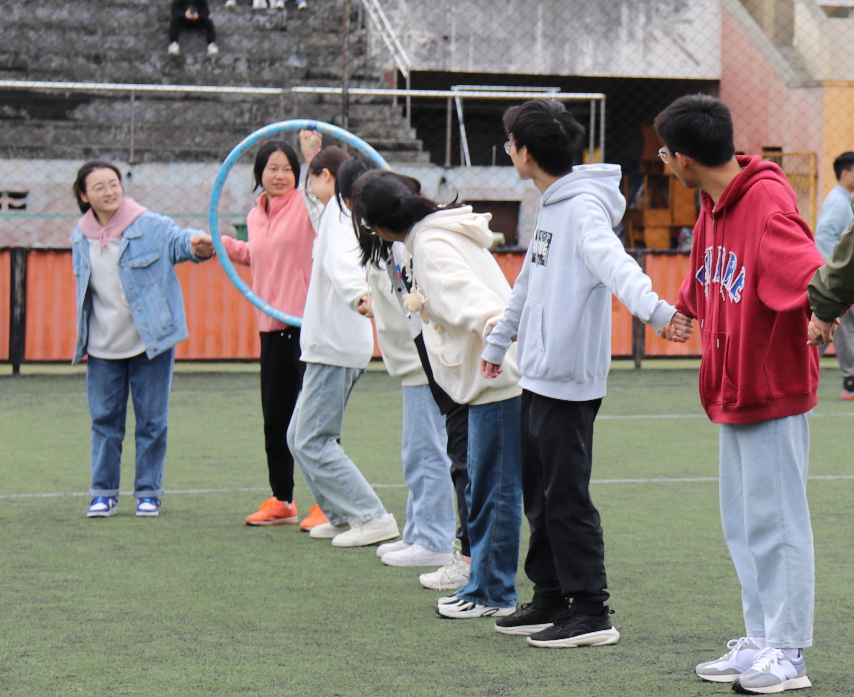 在团体游戏中,同学们相互协调,通力合作,构思各种巧妙的方法,为比赛竭尽全力。即使是充满难度的挑战,大家依旧坚持不懈,全力攻关,彰显了团结合作的力量,发展了顽强拼搏的意志。同时,场下的同学也有高度的参与感,他们呐喊助威、撰写加油稿,共同争取理想成绩,欢呼鼓舞声响彻操场。
