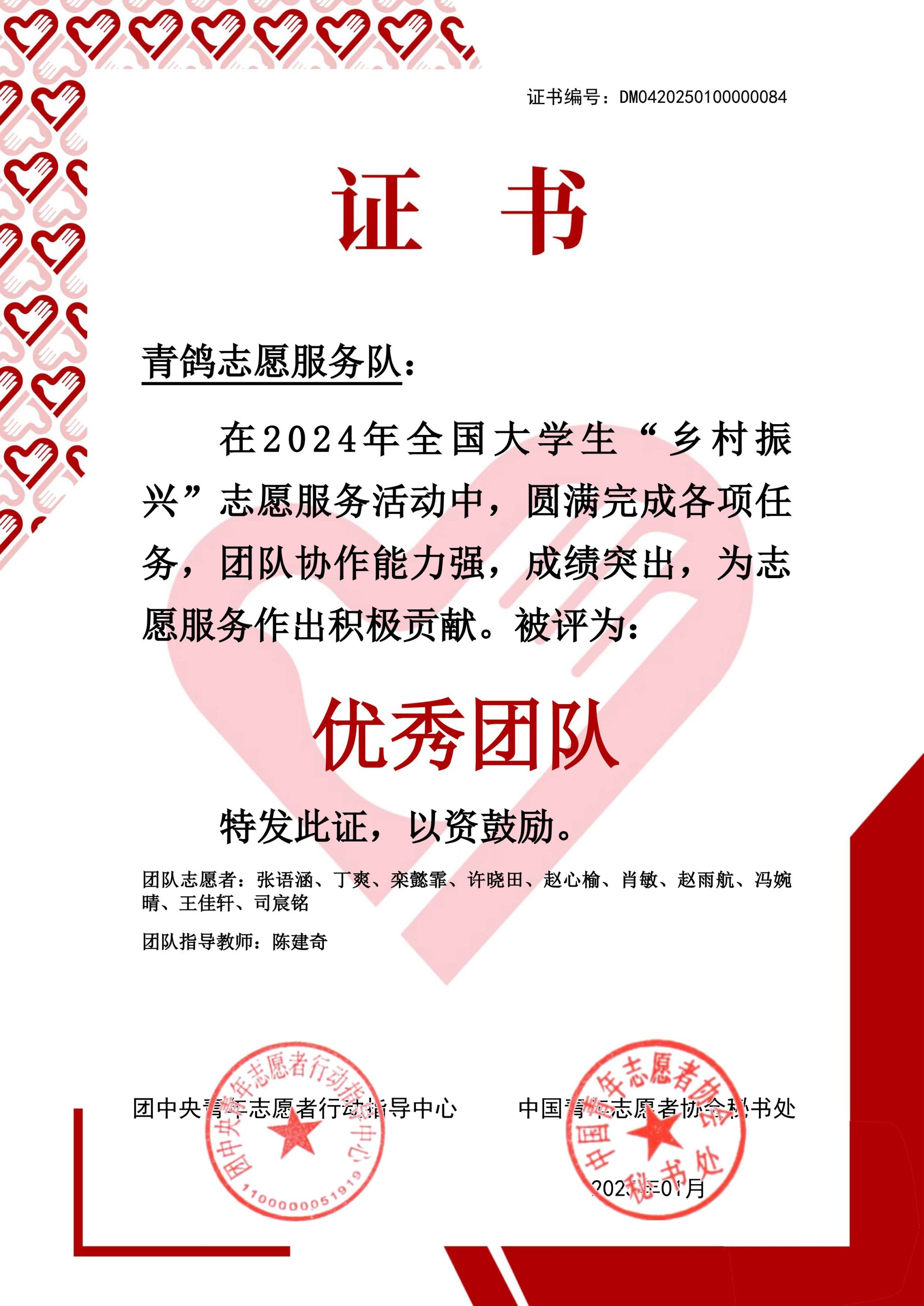 为深入学习贯彻习近平新时代中国特色社会主义思想和党的二十大精神,落实“强国复兴有我”群众性主题宣传教育活动相关要求,服务全面推进乡村振兴,动员引导青年学生投身乡村振兴一线,中国农业发展银行、团中央青年志愿者行动指导中心联合开展了2024年全国大学生“乡村振兴”志愿服务活动。开云kaiyun官网青鸽志愿服务队“乡村振兴”志愿服务团凭借其出色的表现和显著的成绩,荣获优秀团队。