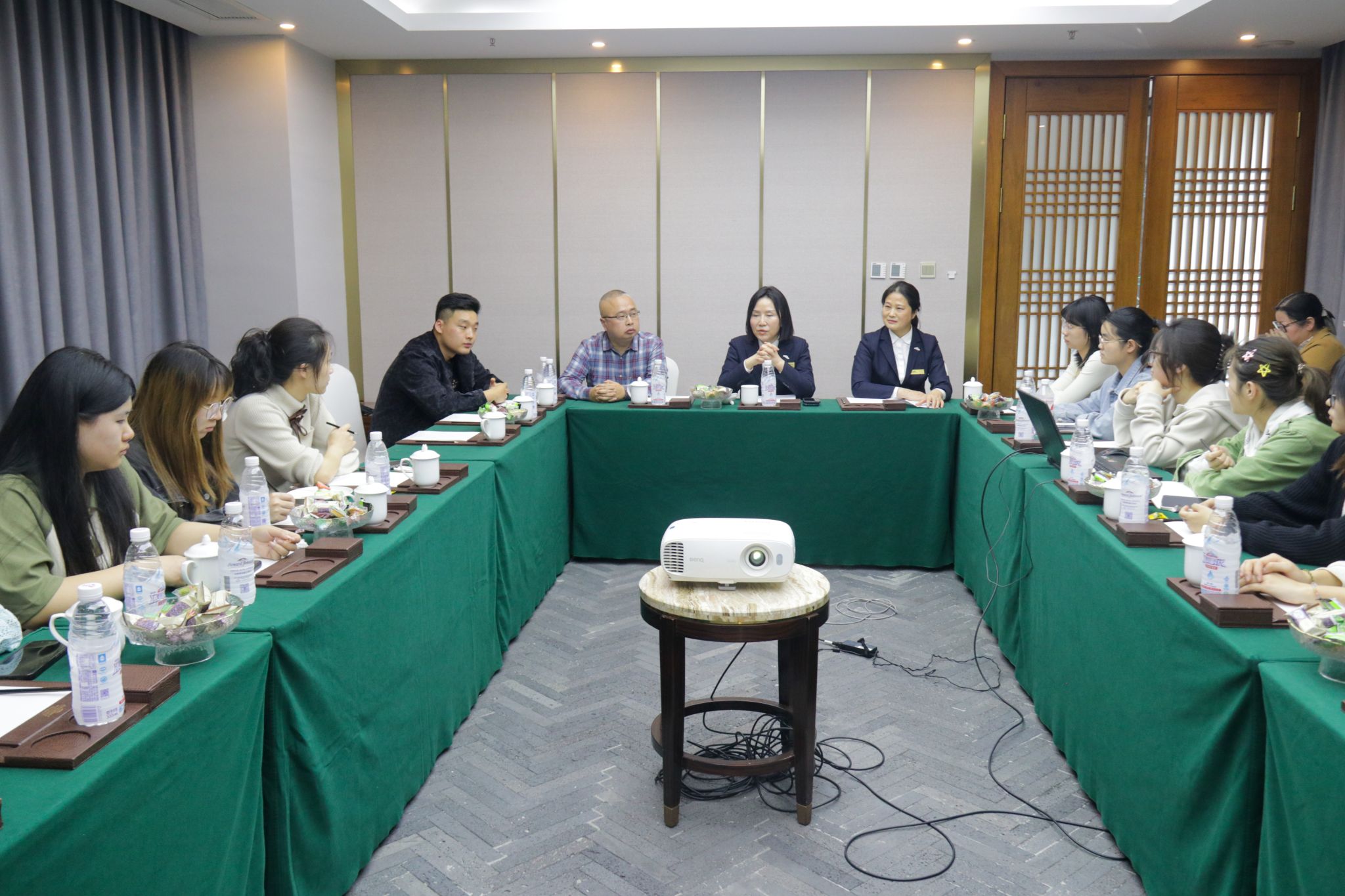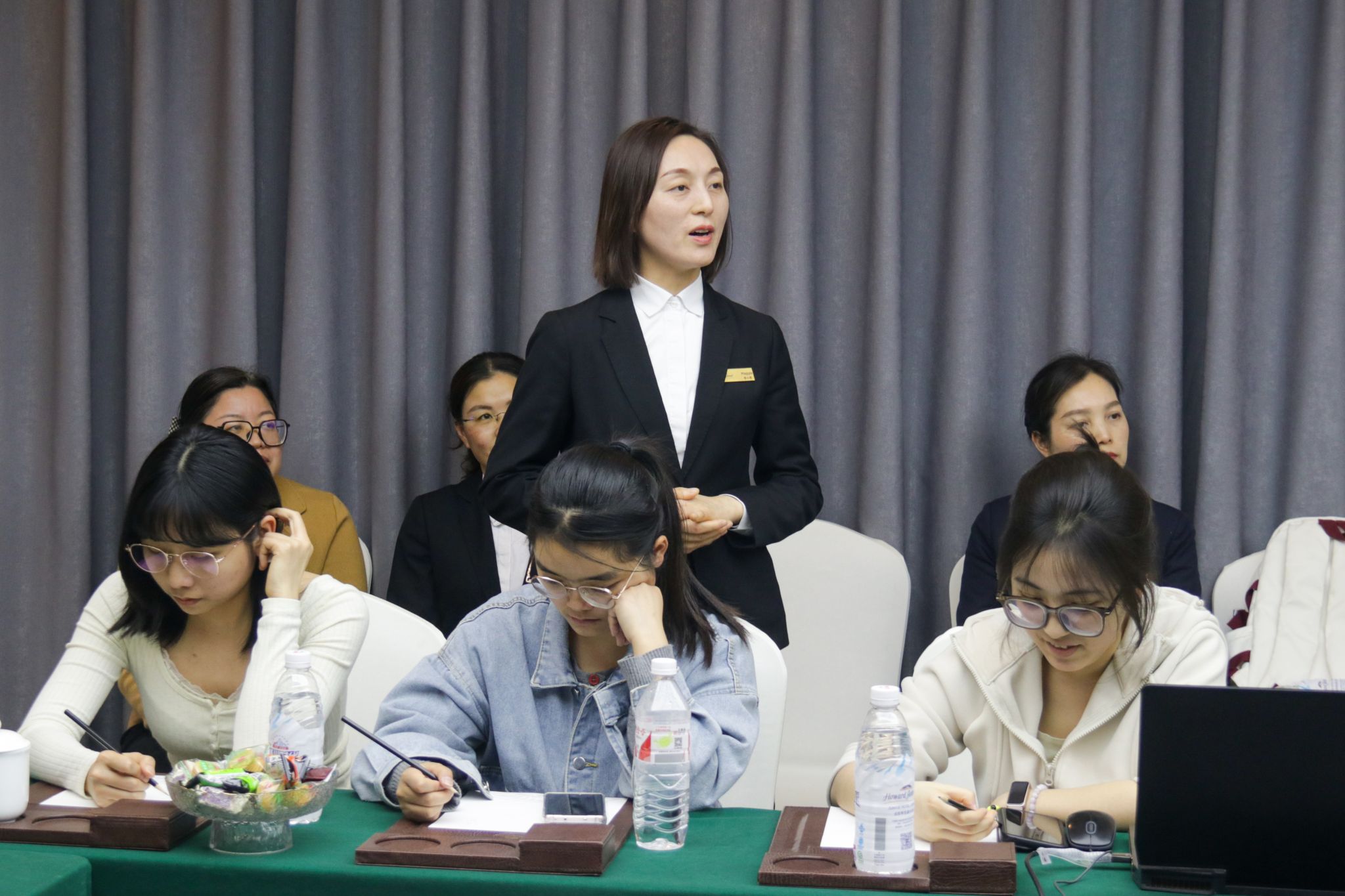 随后,酒店人力资源部经理与学生们进行现场座谈,提供就业指导。经理指出服务行业在仪容仪表、性格、技能学识方面的特殊要求。随即,酒店方解答学生们关于简历撰写、面试要求、职业发展方面的疑问,强调以下三点:第一,在简历筛选过程中,不单关注实习经历,更关注个人在组织中的创新性突破,鼓励高校学生多实践、多思考,敢于表达自我;第二,面试时要着装正式、妆发得体,积极与面试官进行眼神交流,展现青年一代自信、大方的精神面貌;第三,职业发展的过程也是重新学习的过程,在服务行业,更要能守住本心、深耕行业,方能走得更远、走得更稳。