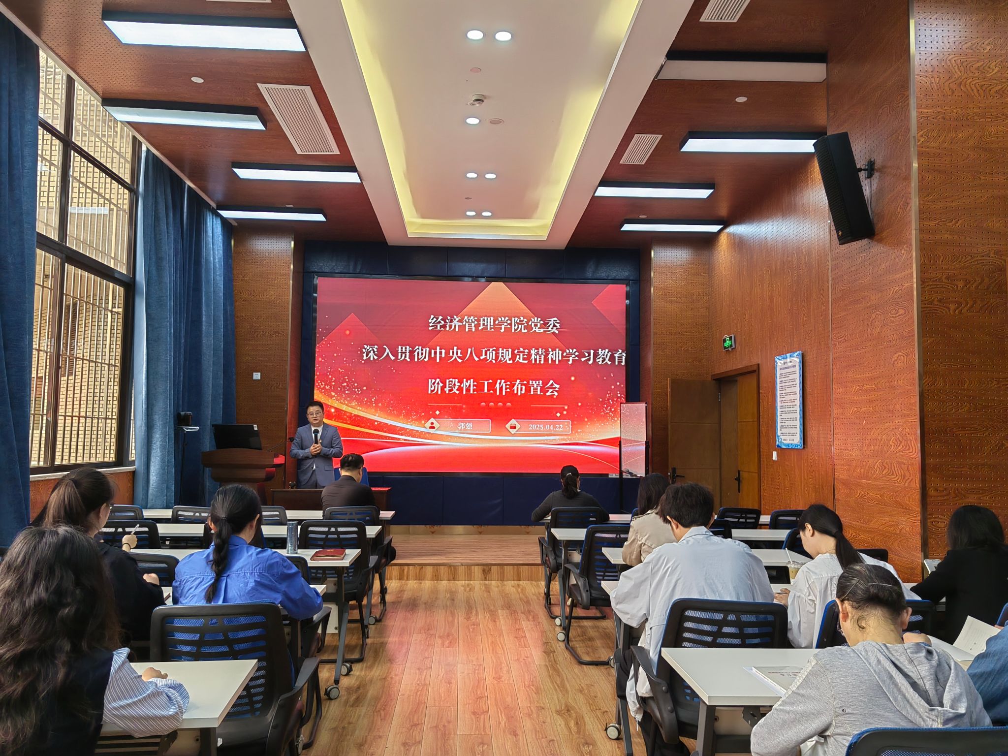 2025422日,学院党委在0218教室召开深入贯彻中央八项规定精神学习教育阶段性工作布置会,学院党委书记郭强、副书记余小英、党委组织员以及师生党支部书记30余人参加了会议。