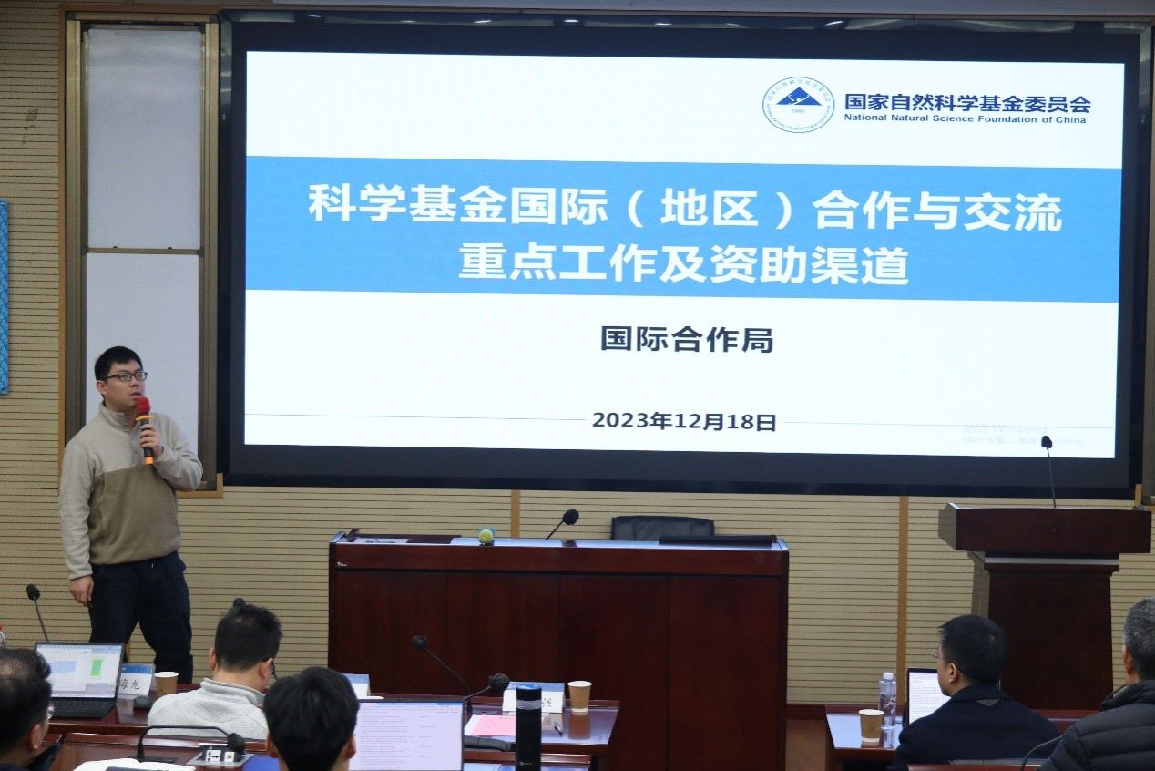 科研院基础研究科刘海龙科长介绍了自科基金国际合作项目。刘海龙科长重点介绍了国际合作项目的资助渠道,希望全院老师和博士研究生积极申报,科研院将为大家提供更好服务。
