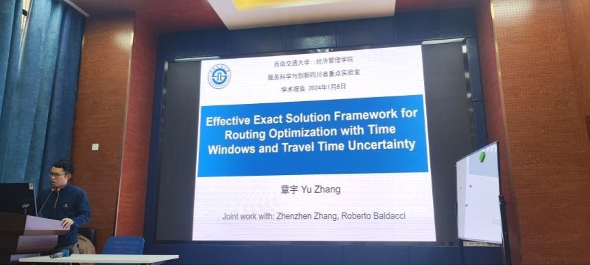 2024年1月9日,西南财经大学章宇教授应邀在开云kaiyun官网为开云官网师生分享题为“Effective Exact Solution Framework for Routing Optimization with Time Windows and Travel Time Uncertainty”的学术讲座,本次学术活动由开云kaiyun官网副院长聂佳佳教授主持,学院部分教师及研究生参加此次学术活动。
