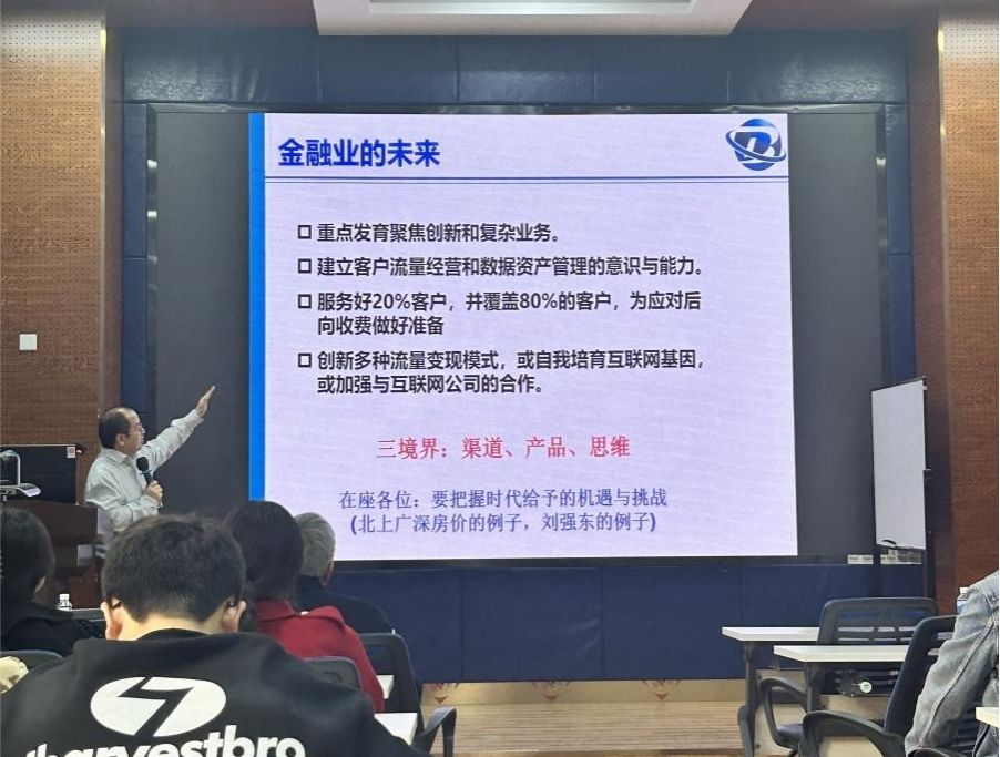 随后,余教授围绕"大数据技术创造的商业模式"为主题,介绍了大数据时代信息基础设施的改变。他总结称,金融科技是一种具有破坏性的创新力量,其迅速发展的核心技术创造了新的商业模式,带来了金融产品的新趋势,重塑了金融产业格局与生态。余教授指出传统行业在大数据时代面临着机遇和挑战,应重点关注创新和复杂业务,并培养客户流量经营和数据资产管理的意识与能力。同时,他提出了对金融教育的思考,强调需要注重大数据理论研究和应用探讨。