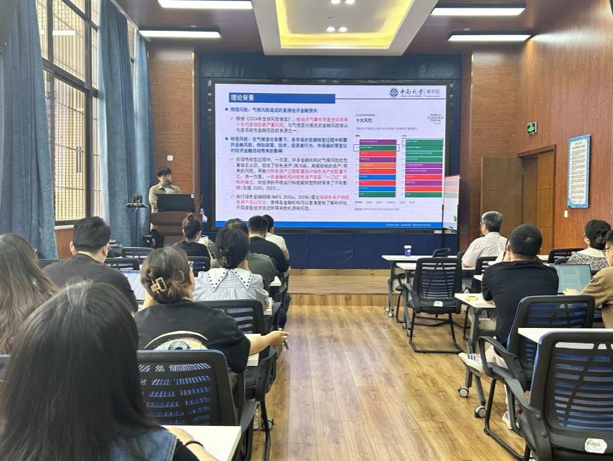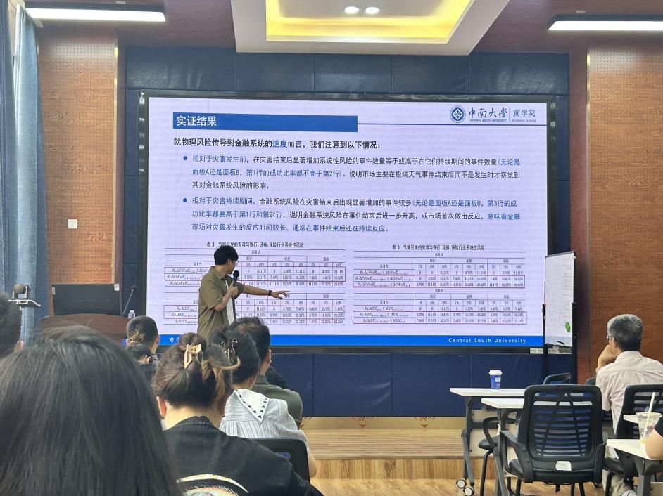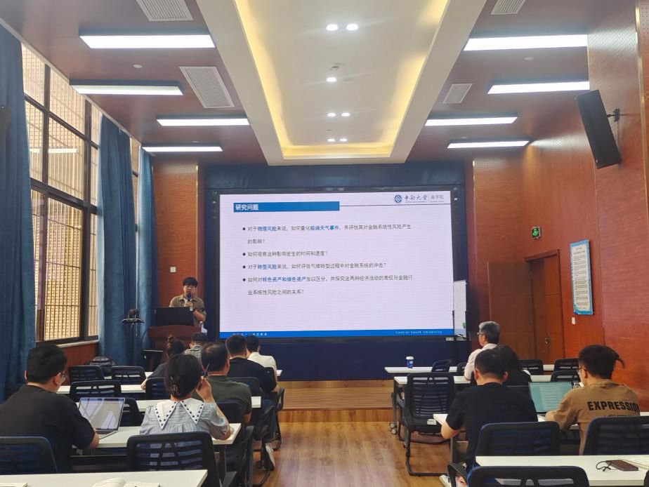 2024年5月14日,中南大学商学院任晓航副教授应邀在学院为开云官网师生作题为“绿色资产还是棕色资产?——极端气候事件下的金融系统性风险研究”的学术讲座。此次学术活动由学院马锋副教授主持,学院部分教师及研究生参加此次讲座。马锋副教授对任晓航副教授的学术成果进行了介绍,并对他的到来表示热烈的欢迎与感谢。
