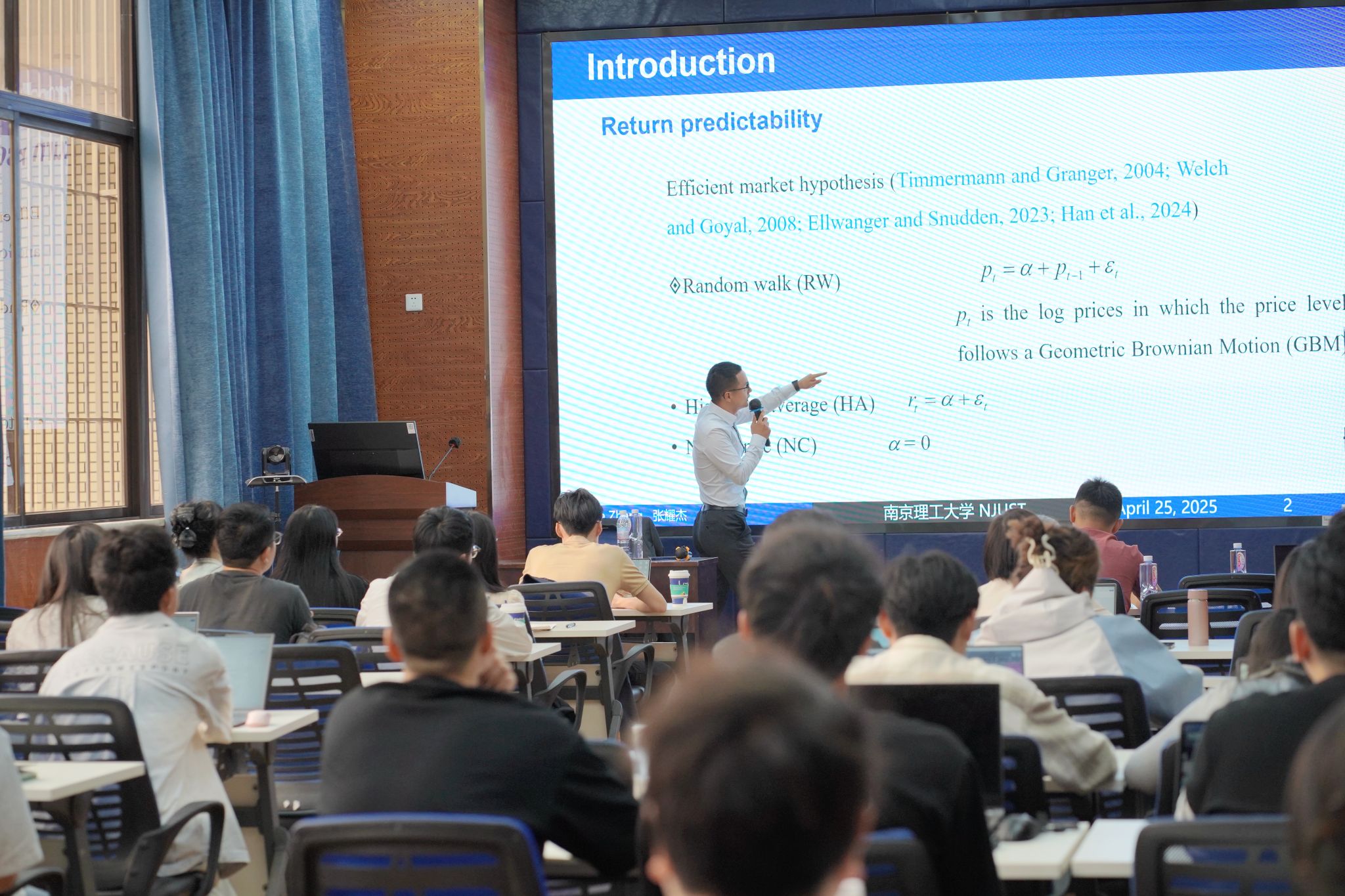 2024年4月25日上午,南京理工大学张耀杰教授应邀在开云kaiyun官网九里校区开云kaiyun官网为开云官网师生带来了一场题为“Forecasting VIX futures returns:Price persistence or random walk?”的学术讲座。本次学术活动由开云官网副院长马锋主持,学院部分教师及研究生积极参与。马锋副院长在开场时介绍了张耀杰教授的学术成果,并对院优秀校友莅临表示热烈欢迎与诚挚感谢。