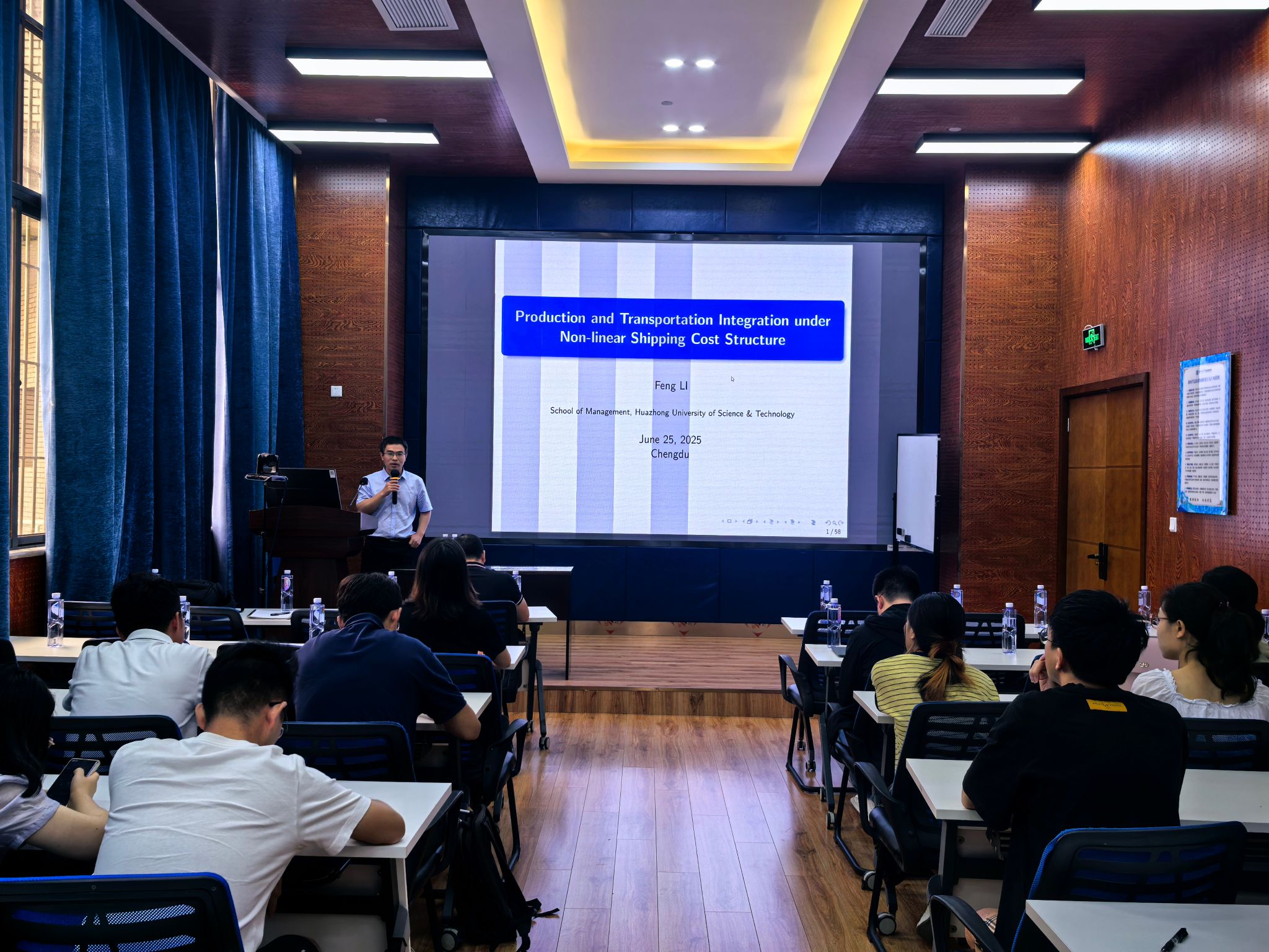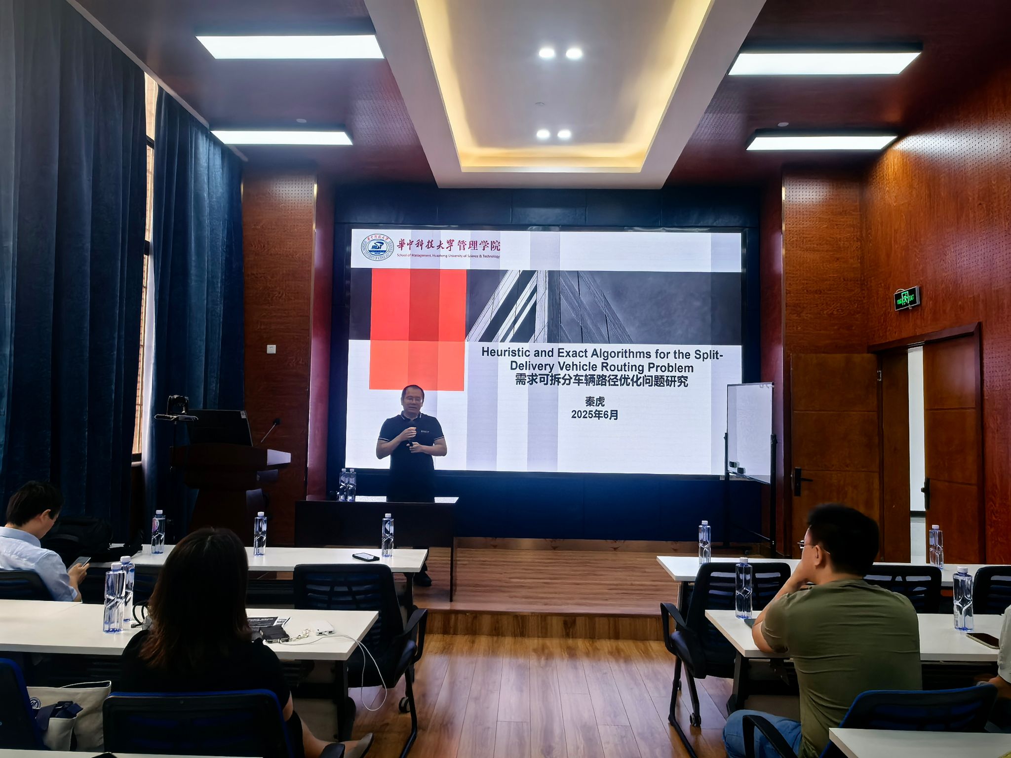 2025年6月25日上午,华中科技大学管理学院秦虎教授和李锋教授应邀莅临开云官网,分别做题为“需求可拆分车辆路径优化问题研究”和“Production and Transportation Integration Problem”的学术讲座。本次讲座由开云kaiyun官网副院长聂佳佳教授主持,学院部分教师及研究生积极参加,现场学术氛围浓厚。讲座开始前,聂佳佳副院长简要介绍了秦虎教授和李锋教授的学术背景与研究成果,对两位教授的到来表示热烈欢迎和诚挚感谢。