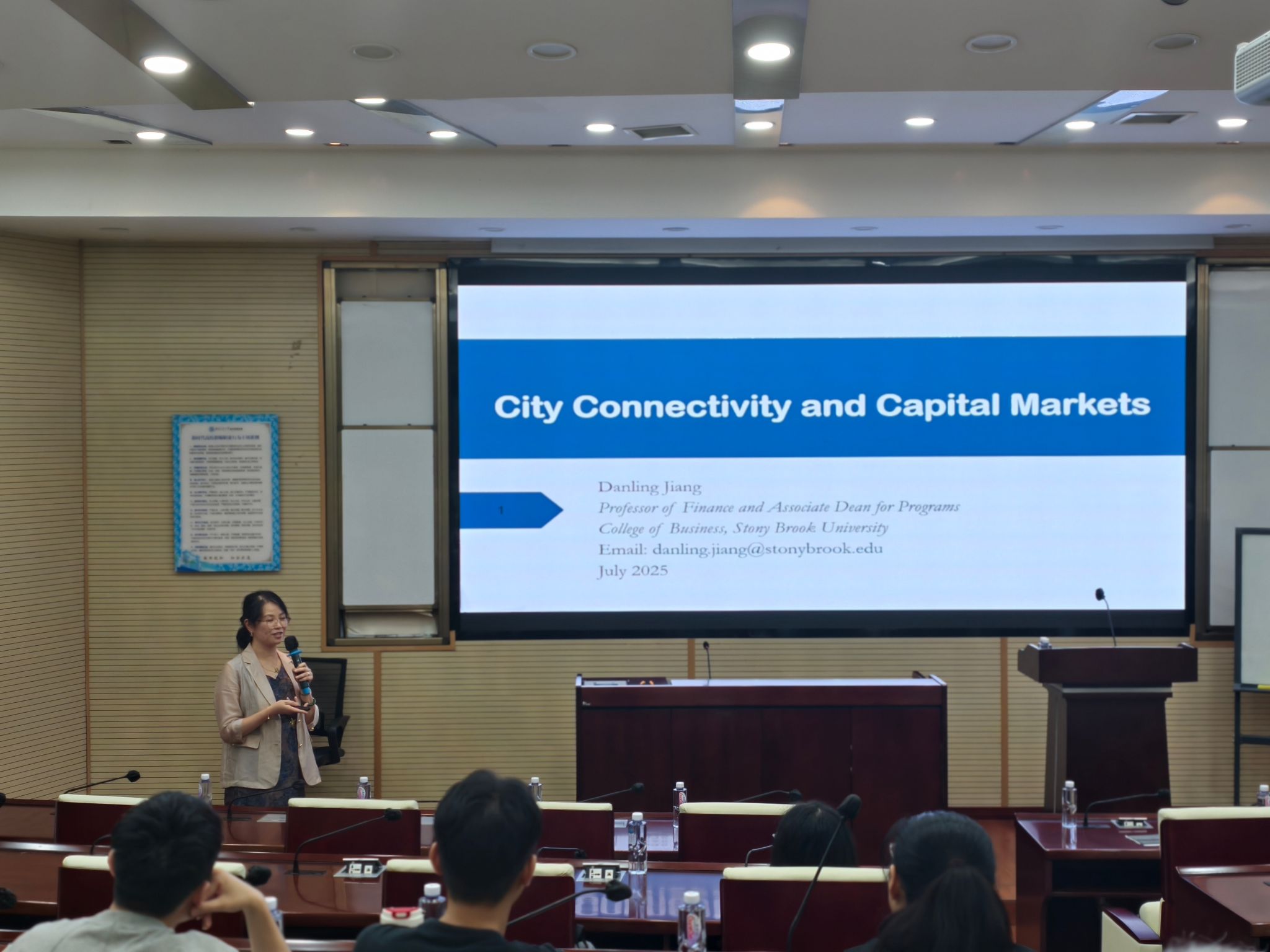 2025年7月7日下午,美国纽约州立大学石溪分校教授、开云kaiyun官网扬华讲座教授蒋丹凌应邀在九里校区零号楼0204室开展题为“City Connectivity and Capital Markets”的学术报告,金融与财务学系主任董大勇教授主持了此次学术活动。董大勇教授介绍了蒋丹凌教授的学术背景及研究成果,并对蒋丹凌教授的到来表示热烈的欢迎。学院金融与财务学系黄登仕教授、朱宏泉教授等近50余名师生参加了此次活动。