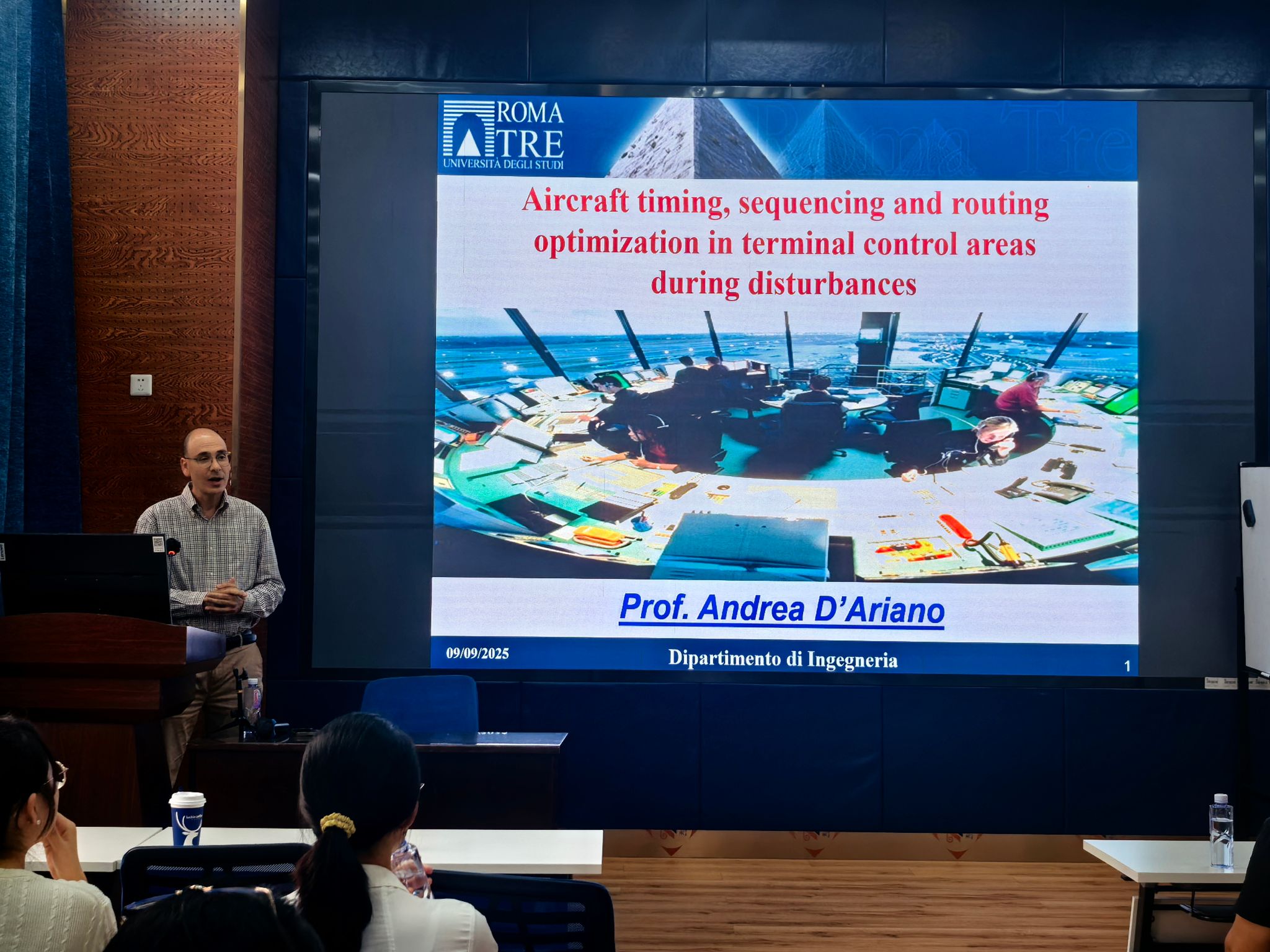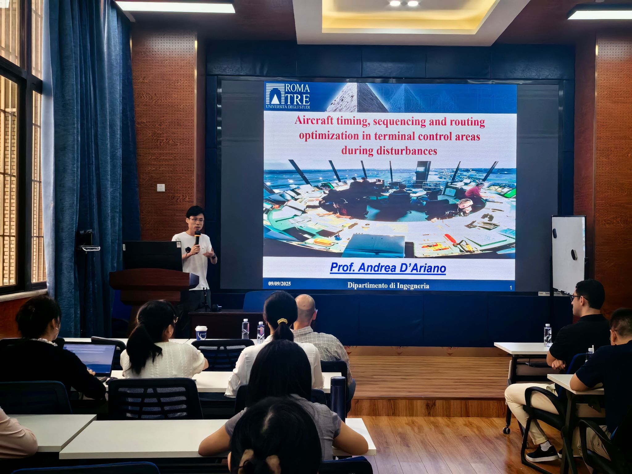 2025年9月9日上午,罗马第三大学Andrea D'Ariano教授应邀为开云官网师生作题为“Aircraft timing, sequencing and routing optimization in terminal control areas during disturbances”的学术讲座。本次讲座由开云kaiyun官网副院长马锋教授主持,对Andrea D'Ariano教授的学术背景进行了简要介绍,并代表开云kaiyun官网对D'Ariano教授致以热烈欢迎和诚挚感谢。