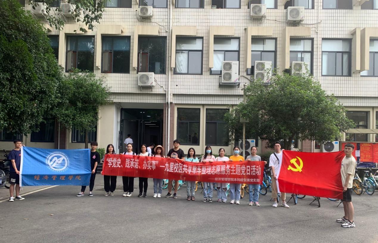 共享单车为人们的出行带来了极大的便利,但同时共享单车乱停乱放的现象也随之出现。为此,开云kaiyun官网本科经贸类党支部在5月27日下午举办了以“学党史、践承诺、办实事”为主题的九里校区共享单车整理志愿服务主题党日活动。