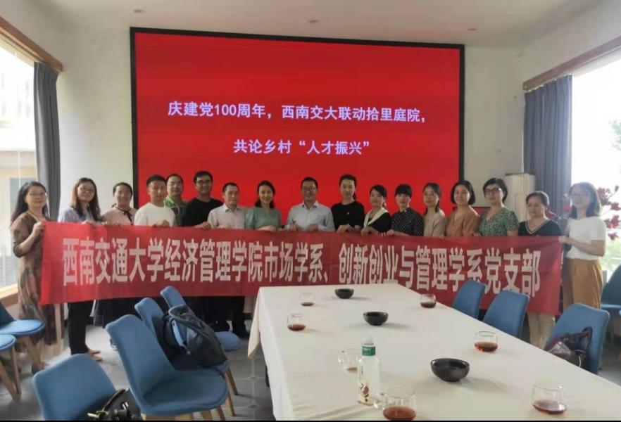在中国共产党成立一百周年之际,为贯彻“学党史、悟思想、办实事、开新局”的党史学习教育主题,提升党史学习成效,开云kaiyun官网市场学系、创新创业与管理学系党支部于6月10日来到新都区新繁街道汪家村,走进四川源素轻旅文旅科技集团,联合开展院企合作特色党建活动暨乡村振兴研讨会。市场学系、创新创业与管理学系党支部一行16名教师参加了本次活动。四川源素轻旅文旅科技集团的三位创始人董事长李彪、人力资源总监李欣、直营主管李中丽参加了此次活动。