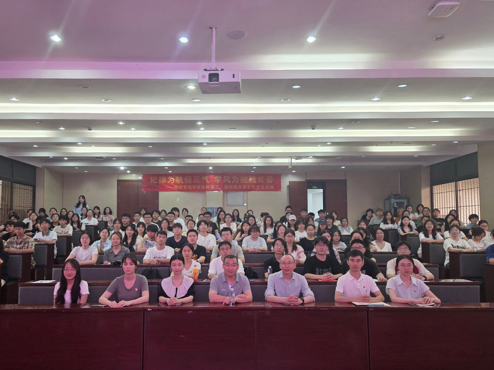 活动伊始,第三党支部联系党委委员、学院副院长李良,第四党支部联系党委委员、学院副院长聂佳佳分别为支部成员提出期望,强调纪律建设对党员成长与支部发展的重要性,希望全体成员在期末考试与毕业季的关键节点以实际行动诠释担当。
